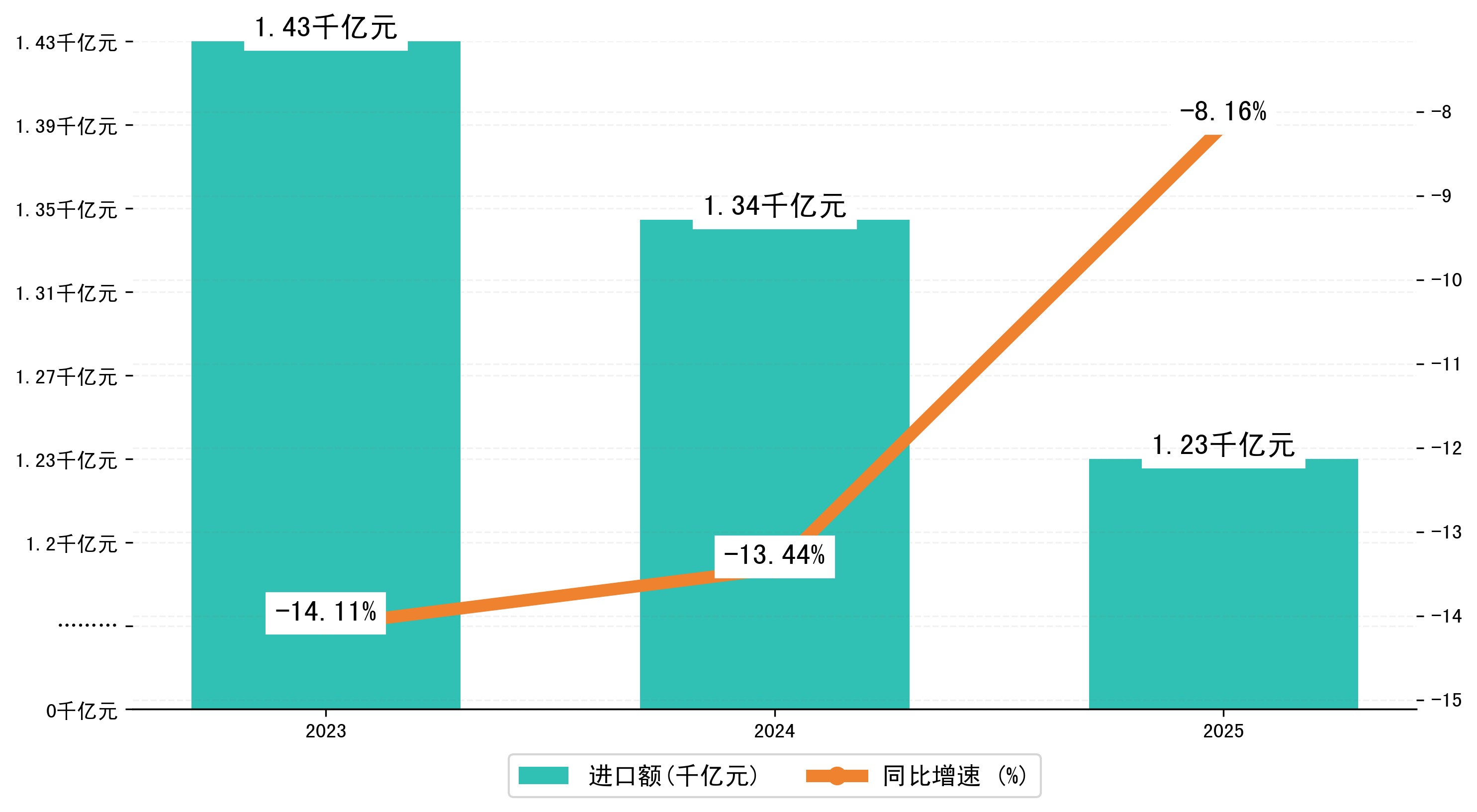 以人民币计,2025年1-4月天津市进口额为1234,5020.5691万元,相比上年同期减少了109,7451.2172万元,同比减少了-7.90%。