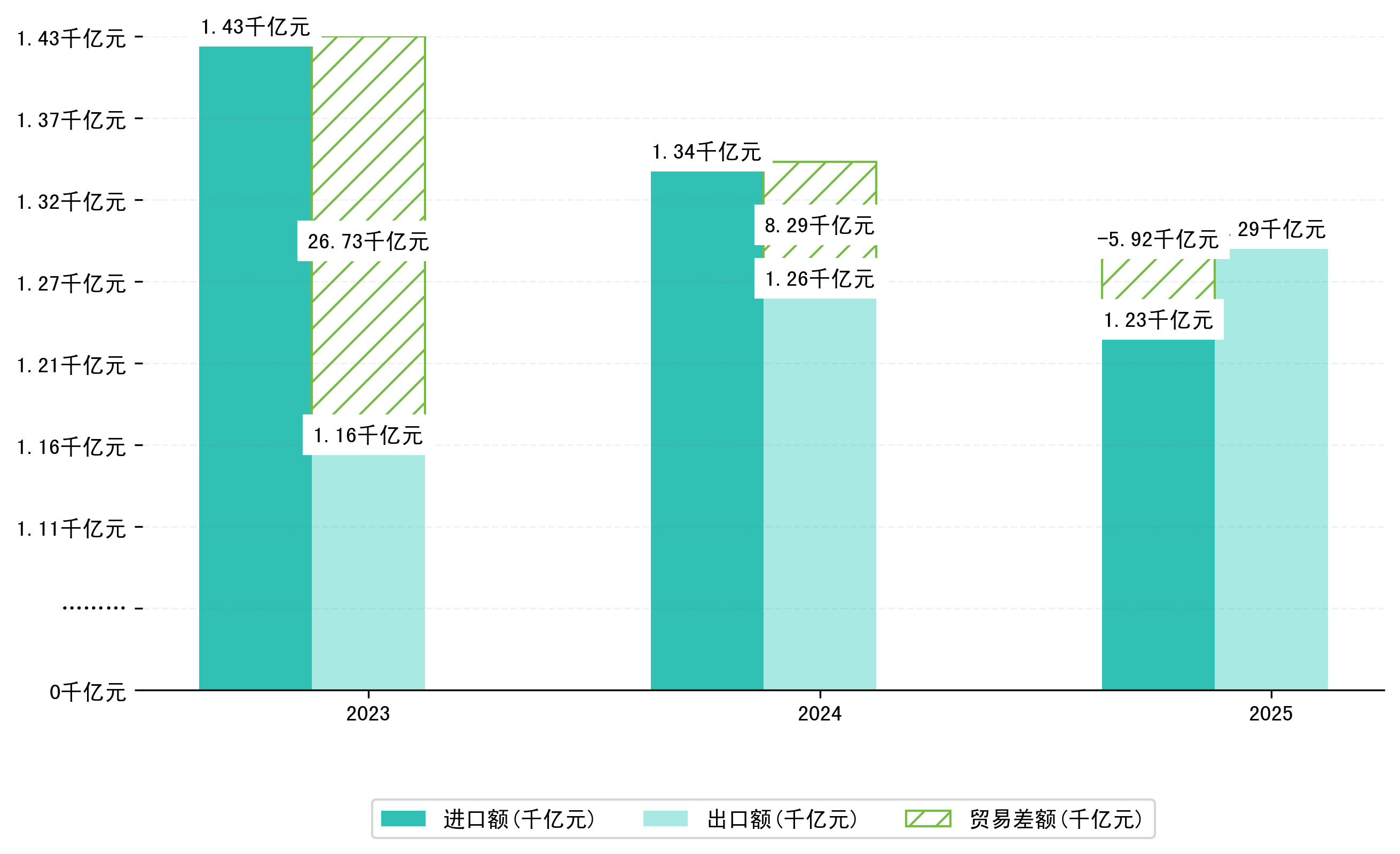 以美元计,2025年4月天津市贸易差额为8,0031,7064万美元(贸易顺差),相比上月增加了2,7087,4121万美元;相比上年同期增加了11,4101,9954万美元,同比增加-334.9%。