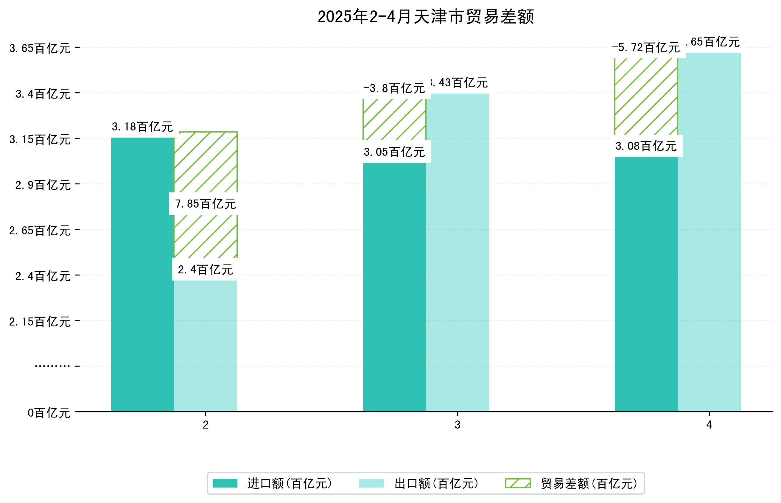 一、2025年4月天津市单月出口总额及进出口差额统计分析