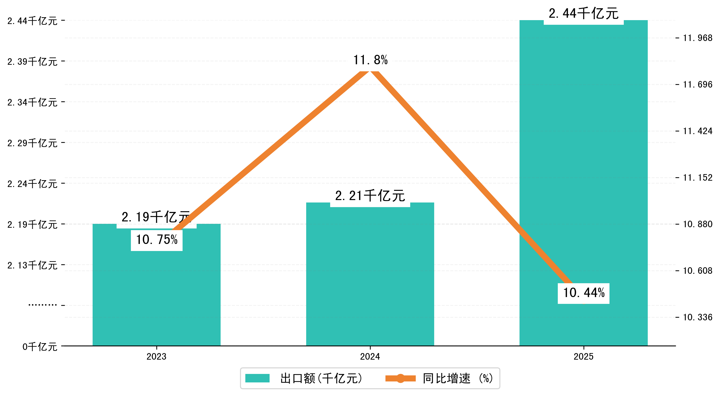 以美元计,2025年1-7月天津市出口额为340,2454.656万美元,相比上年同期增加了28,7688.108万美元,同比增加9.20%。