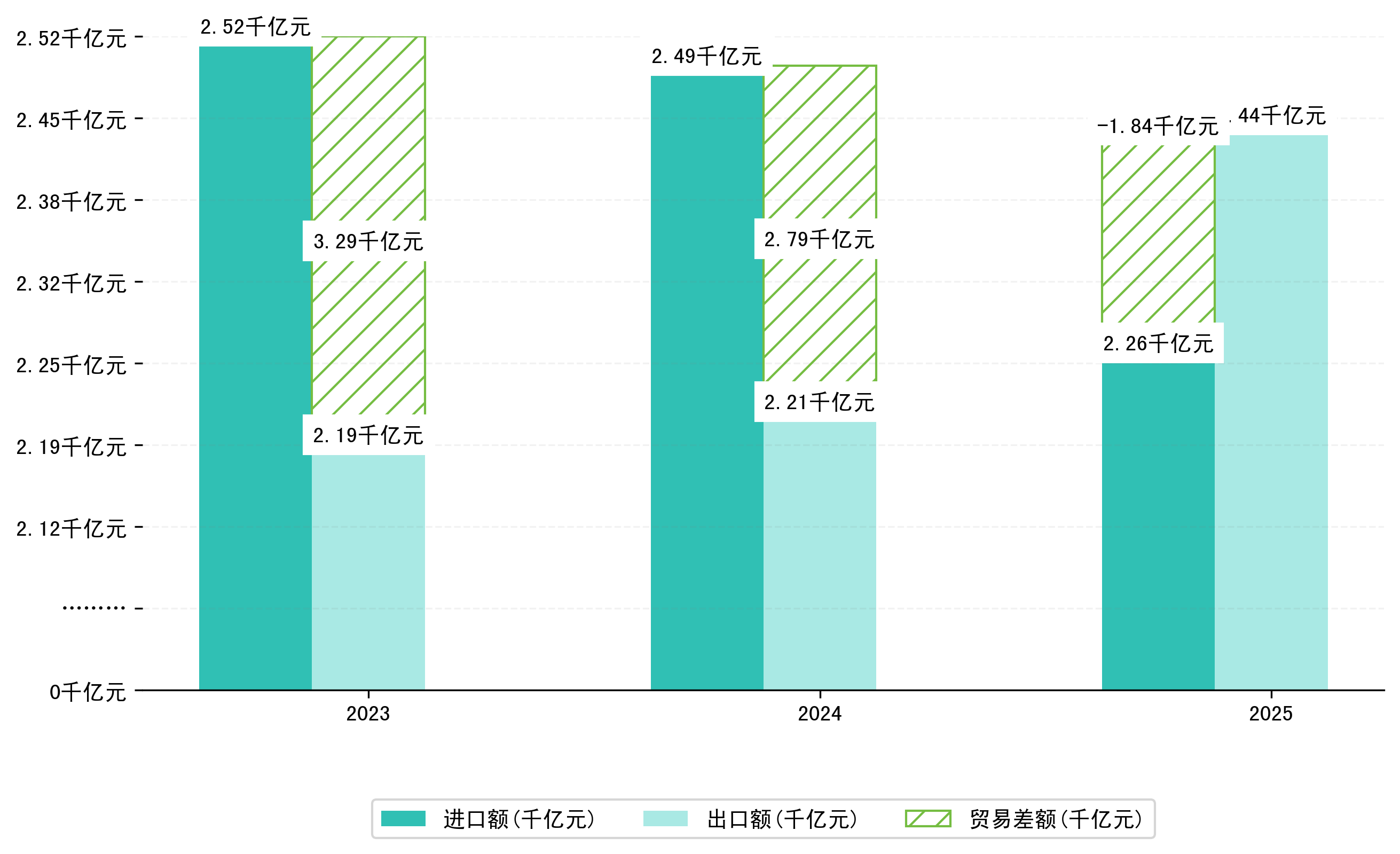 以美元计,2025年1-7月天津市贸易差额为25,4842,9822万美元(贸易顺差),相比上年同期增加了64,7229,7402万美元,同比增加-164.95%。