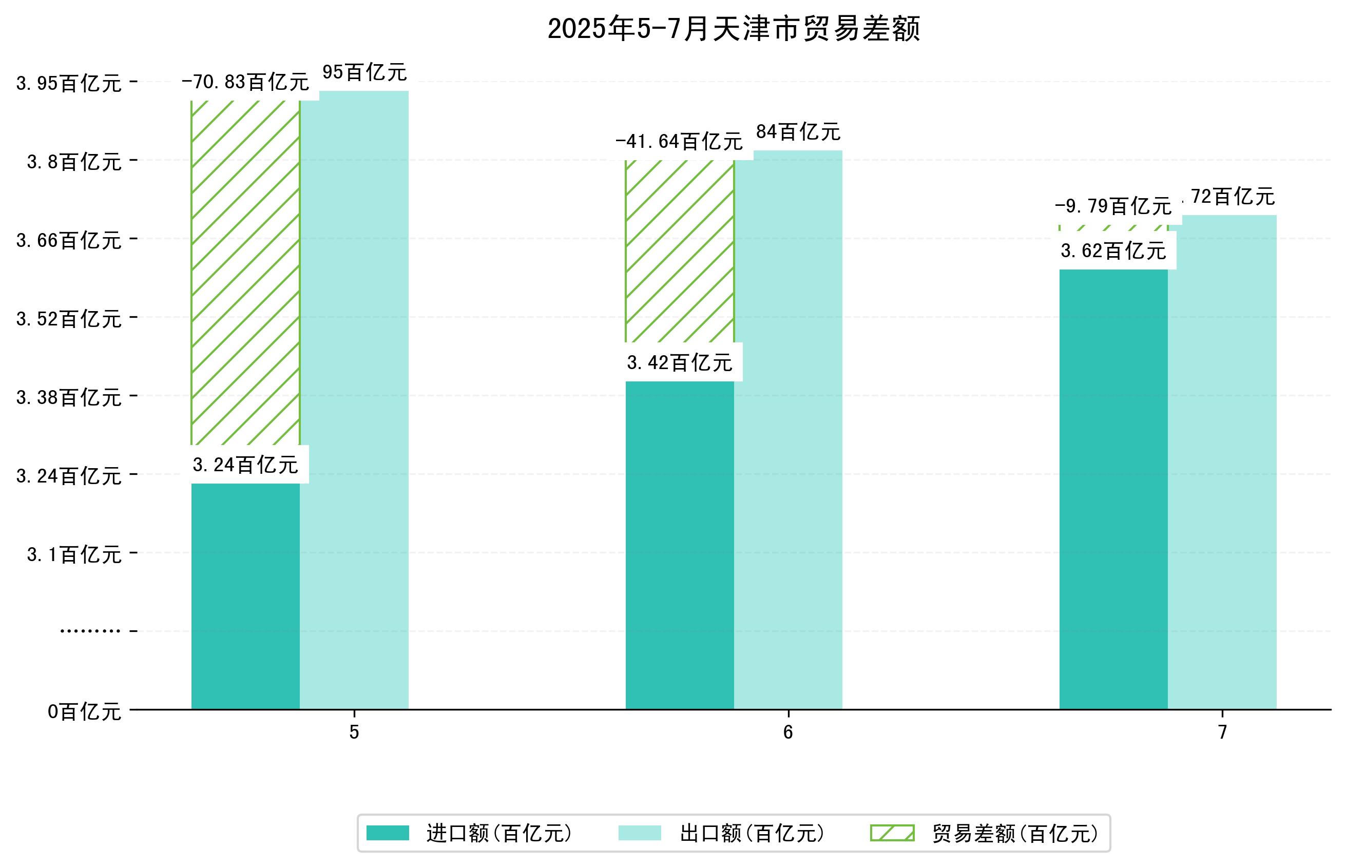一、2025年7月天津市单月出口总额及进出口差额统计分析