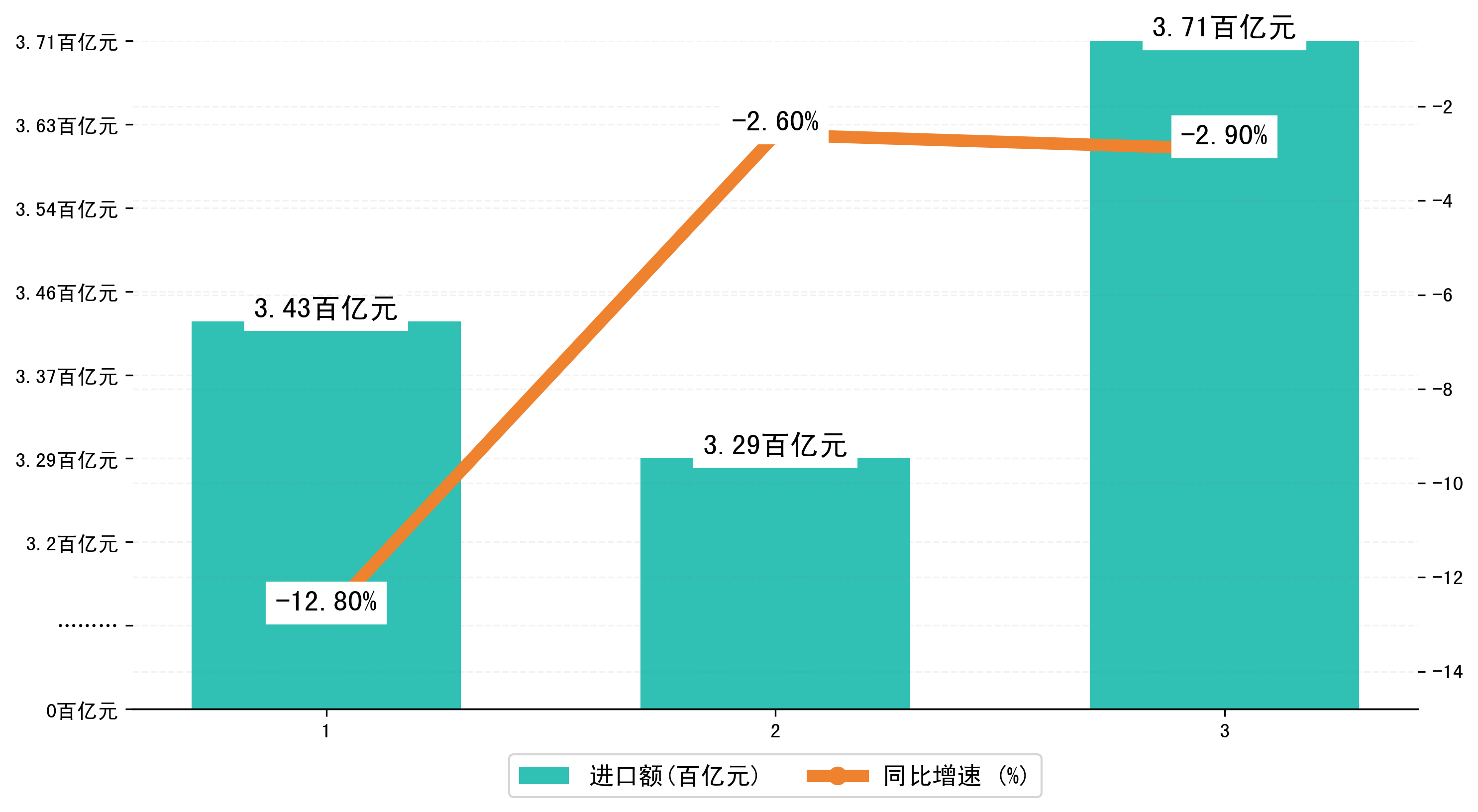 以人民币计,2023年3月天津市进口额为371,0093.2715万元,相比上月增加了42,3542.4408万元;相比上年同期减少了9,1659.7285万元,同比减少了-2.90%。