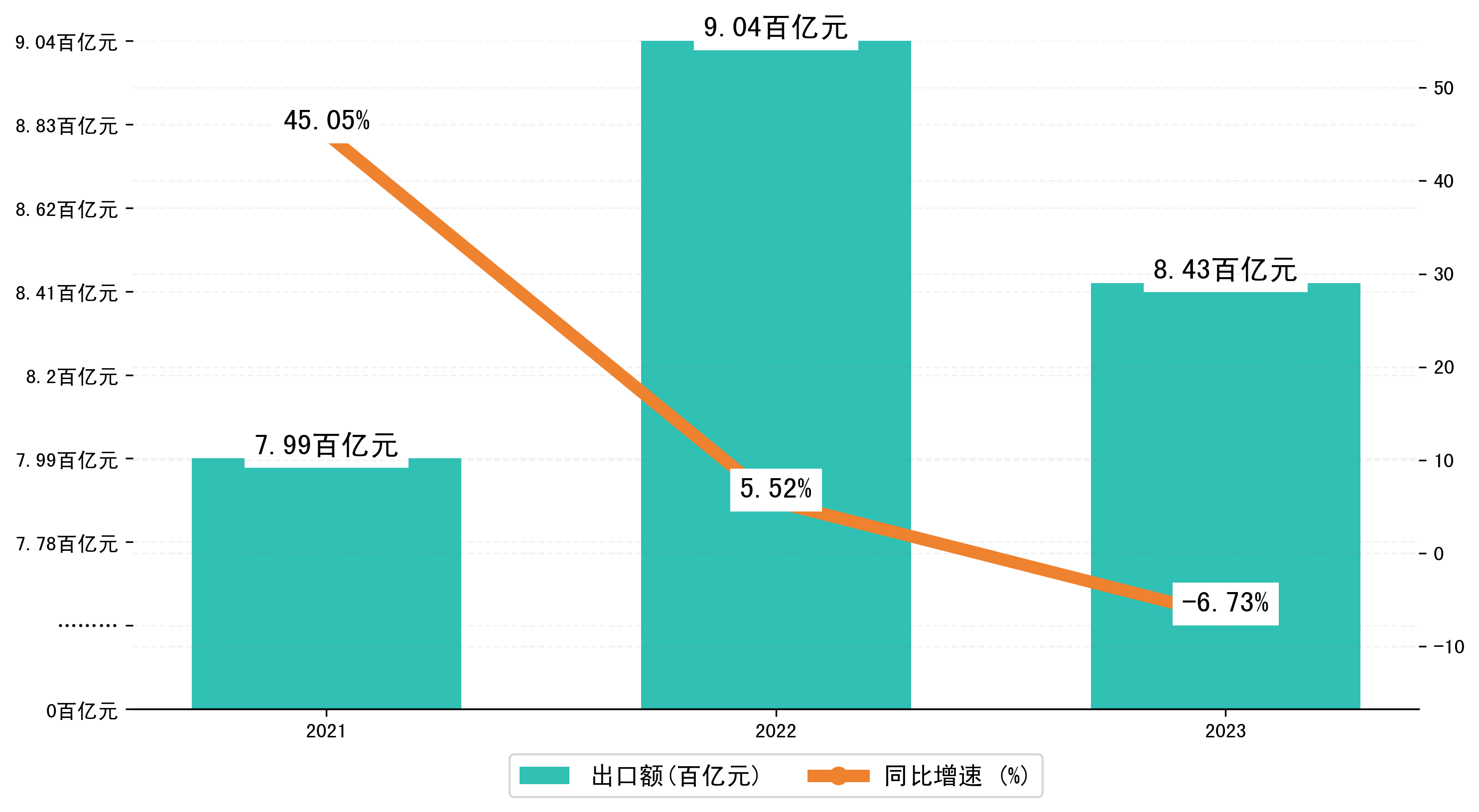 以人民币计,2023年1-3月天津市出口额为843,4684.1693万元,相比上年同期减少了60,9089.8522万元,同比减少了-6.70%。