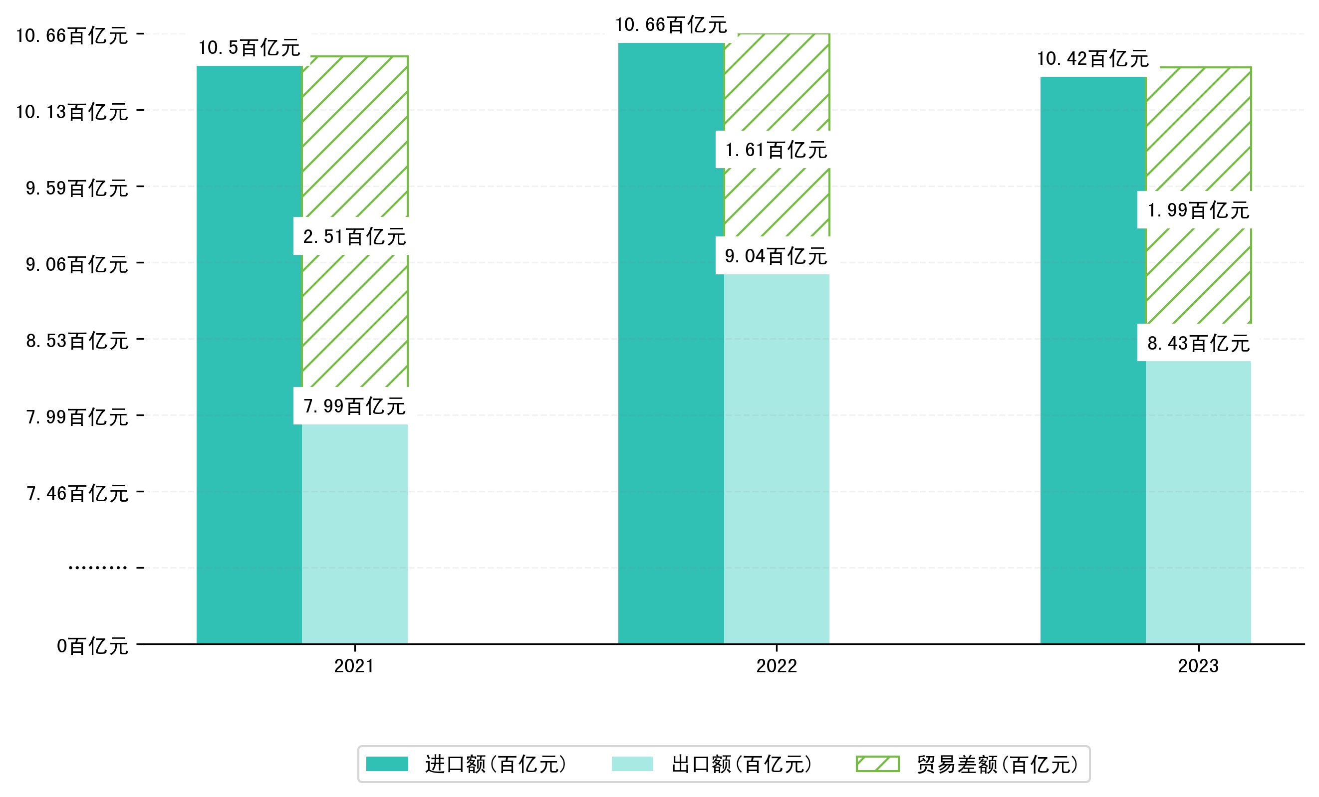 以美元计,2023年1-3月天津市贸易差额为28,7138,6386万美元(贸易逆差),相比上年同期减少了3,4332,9029万美元,同比减少13.58%。