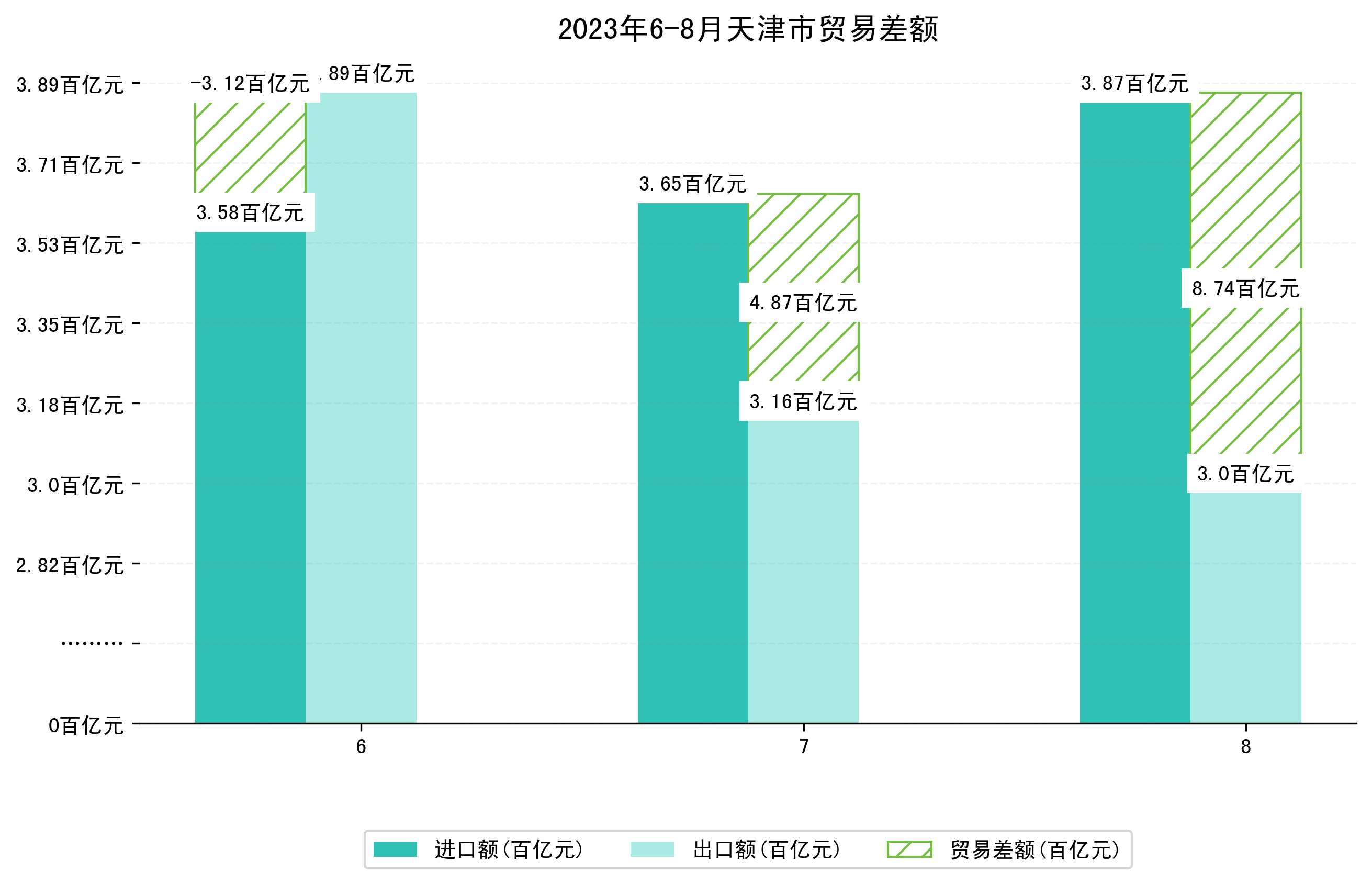 (图四:2023年6-8月天津市贸易差额)