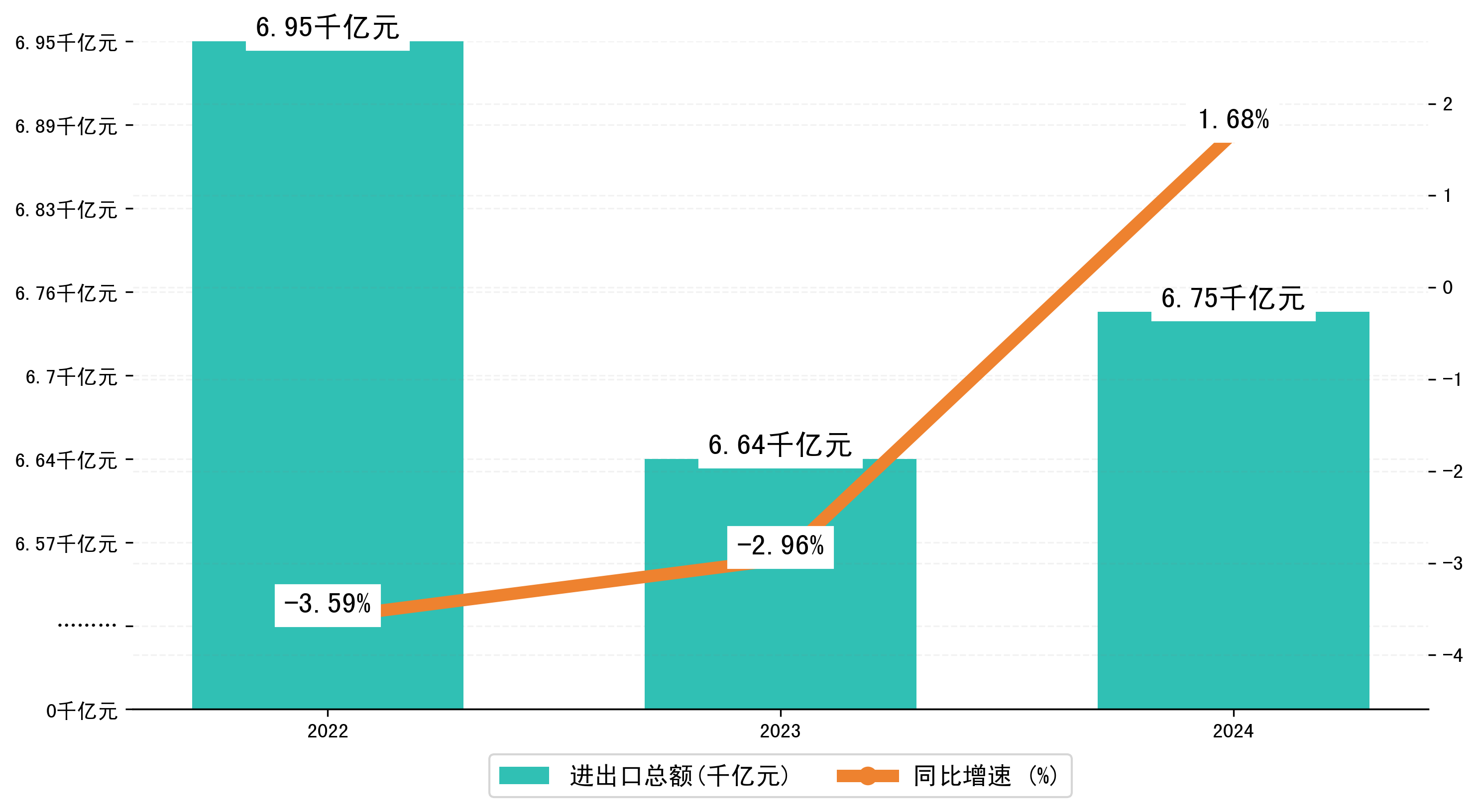 以人民币计,2024年1-10月天津市进出口总额为6748,4984.1694万元,相比上年同期增加了111,7139.9228万元,同比增加了1.90%。