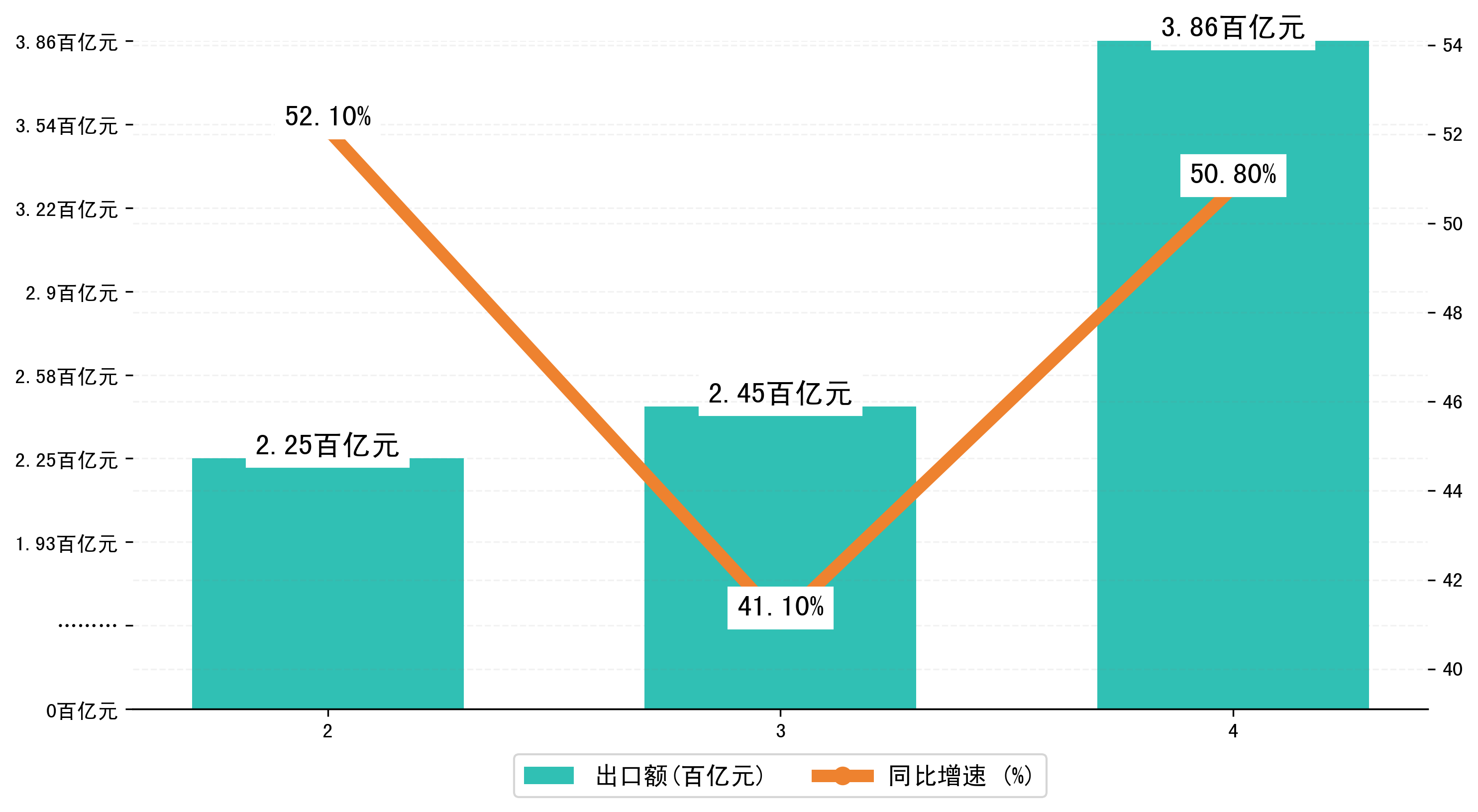 (图二:2024年2-4月新疆维吾尔自治区出口额)