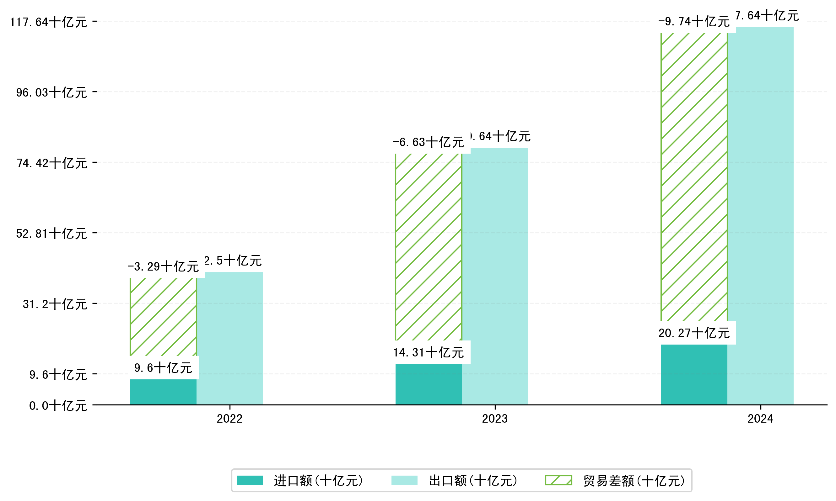 以人民币计,2024年1-4月新疆维吾尔自治区贸易差额为973,7051,0428万元(贸易顺差),相比上年同期增加了310,3968,7475万元,同比增加46.8%。