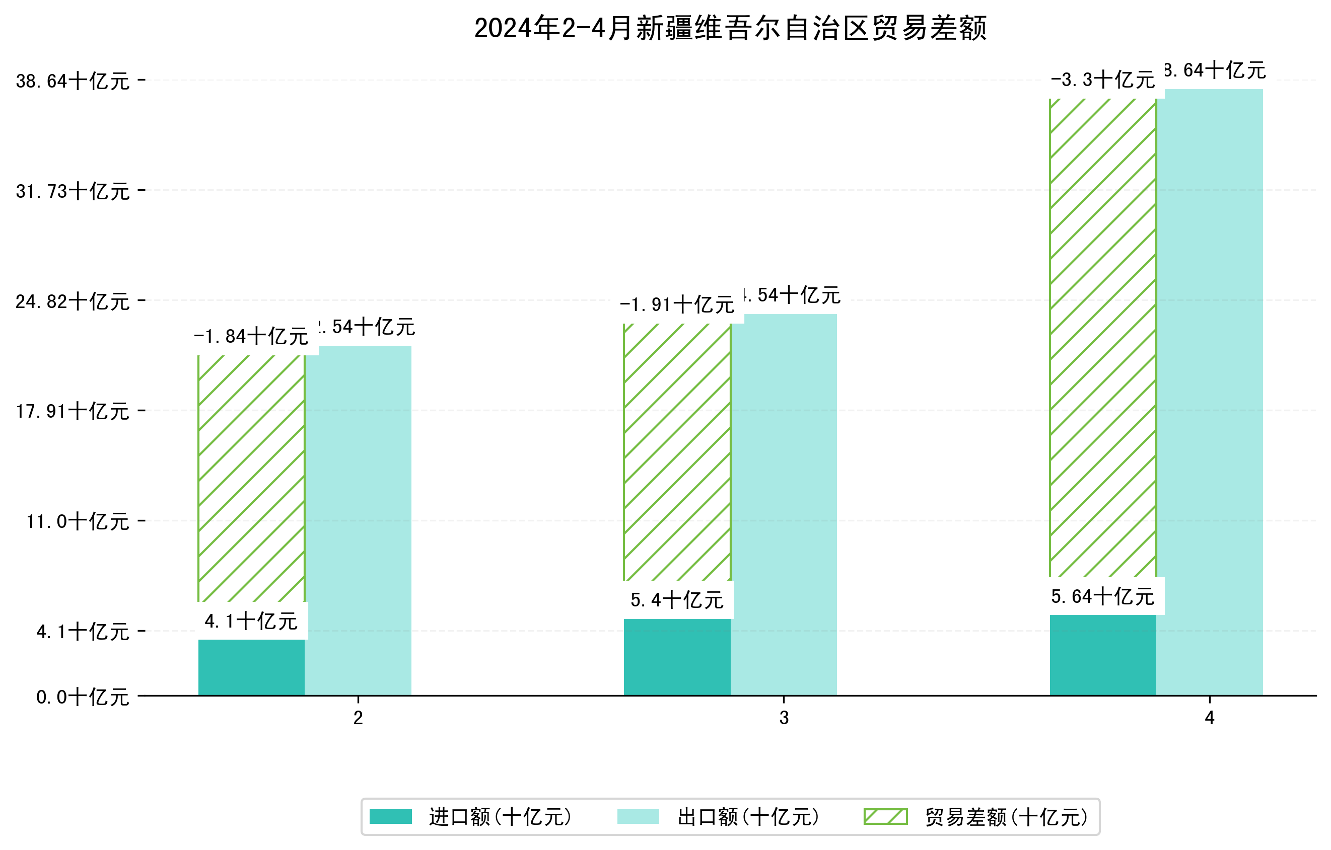 (图四:2024年2-4月新疆维吾尔自治区贸易差额)