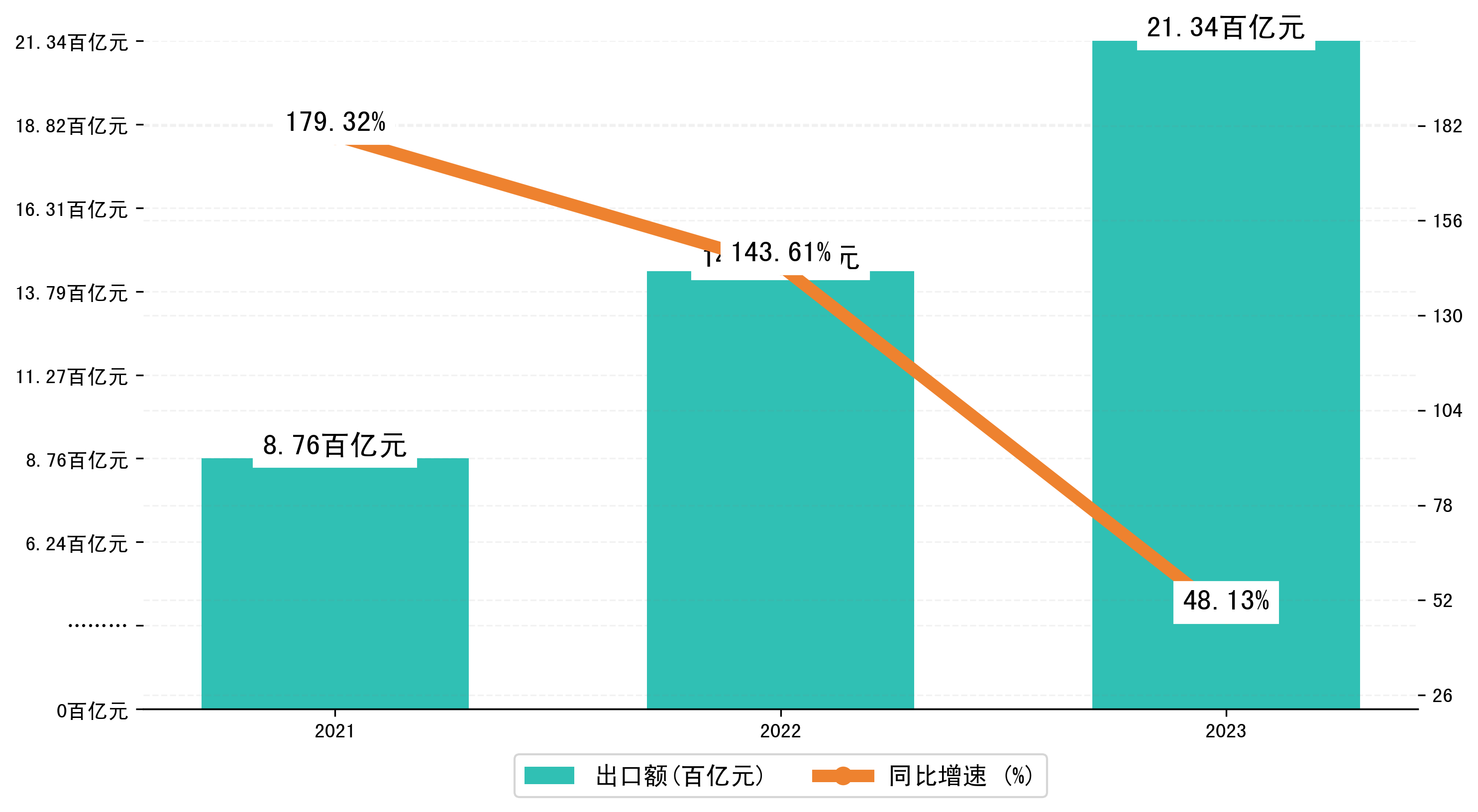 以人民币计,2023年1-9月新疆维吾尔自治区出口额为2133,7699.4439万元,相比上年同期增加了693,2623.2191万元,同比增加了48.80%。