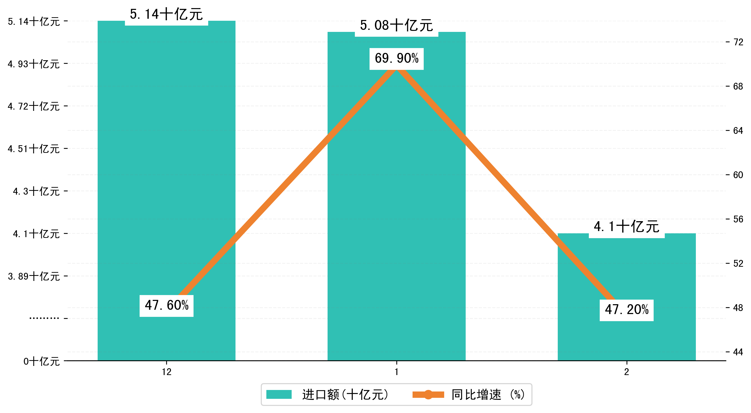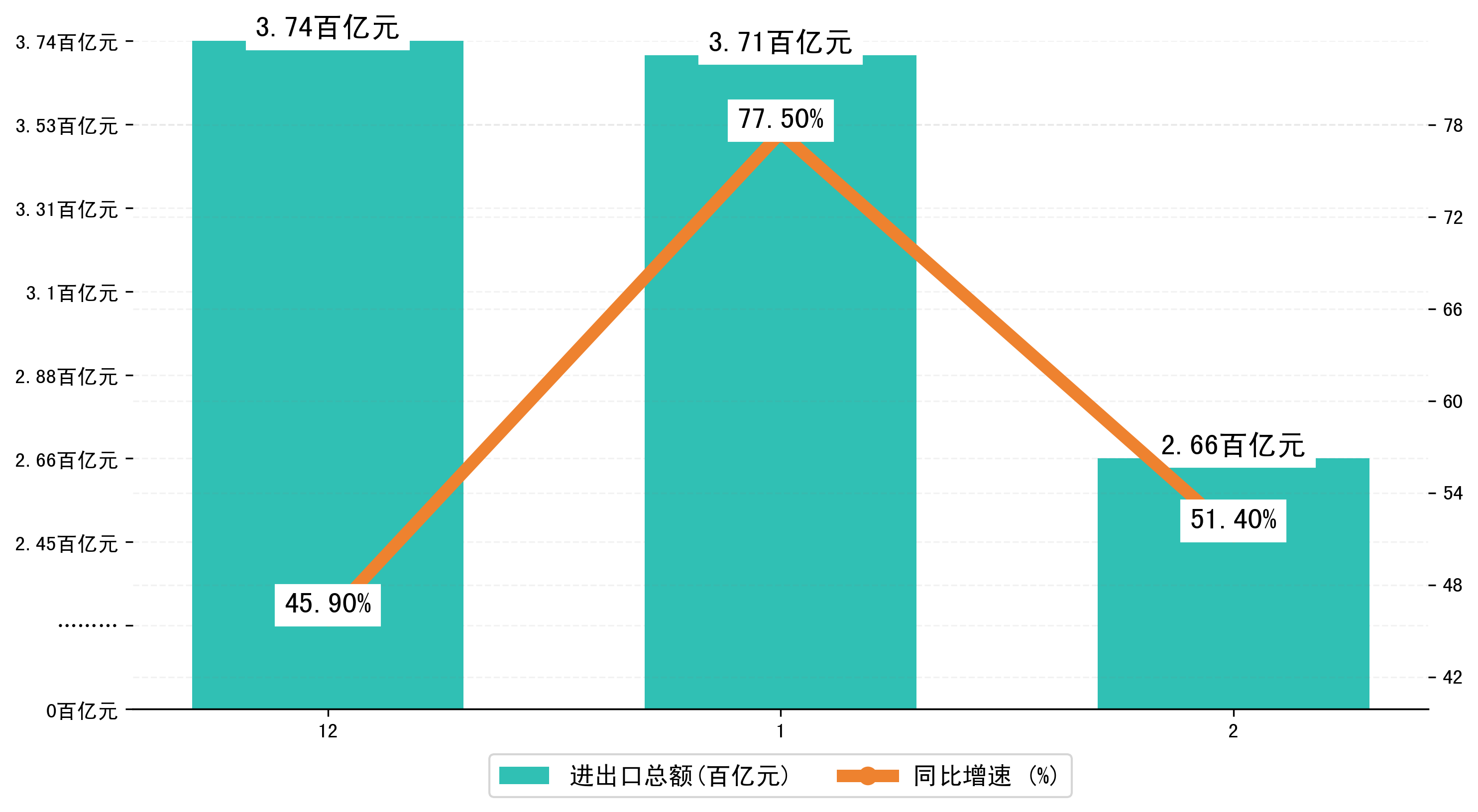 (图一:2024年12-2月新疆维吾尔自治区进出口总额)
