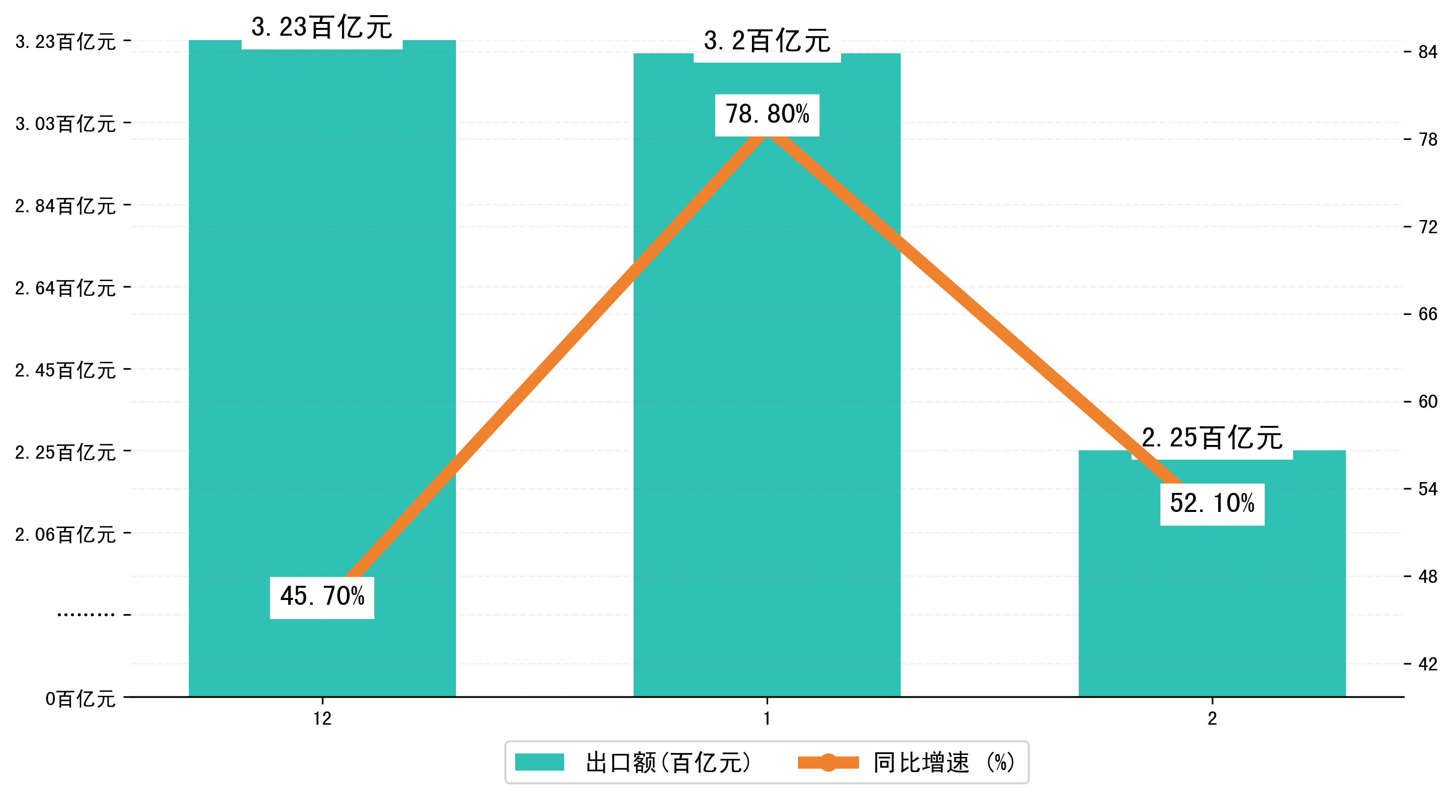 (图二:2024年12-2月新疆维吾尔自治区出口额)