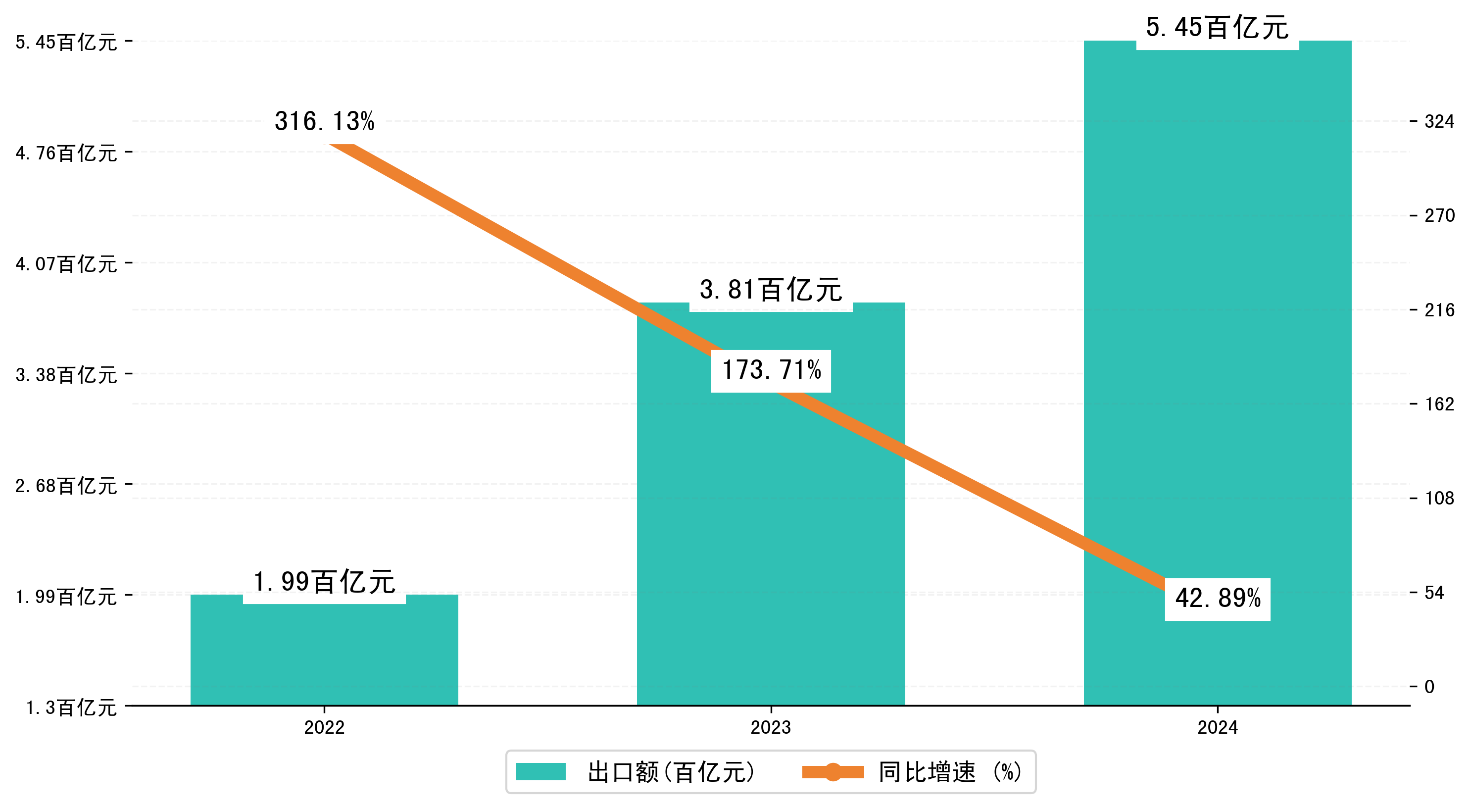 以人民币计,2024年2月新疆维吾尔自治区出口额为225,4361.2133万元,相比上月减少了94,2595.0385万元;相比上年同期增加了32,5418.1554万元,同比增加了52.10%。