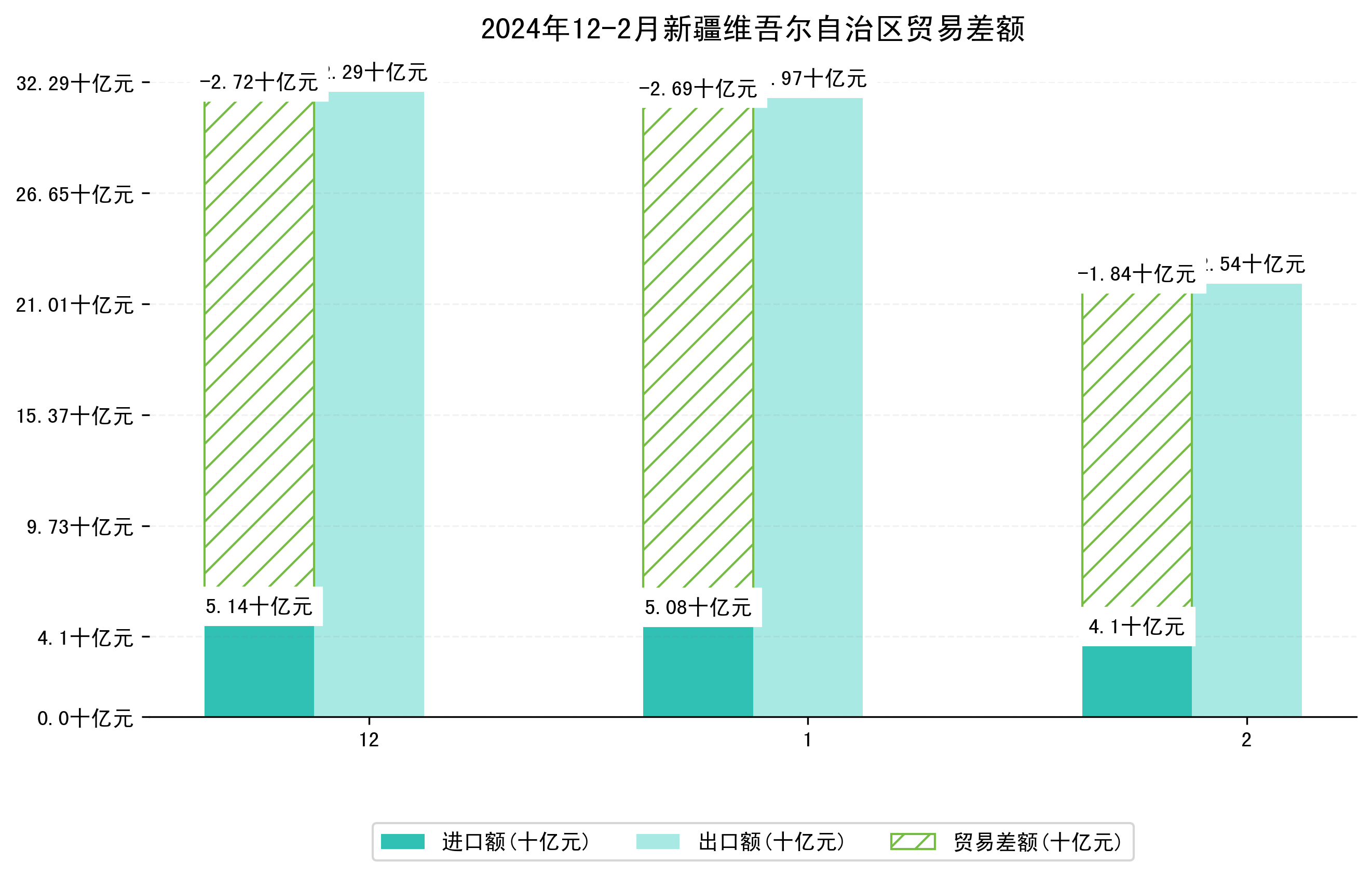 (图四:2024年12-2月新疆维吾尔自治区贸易差额)