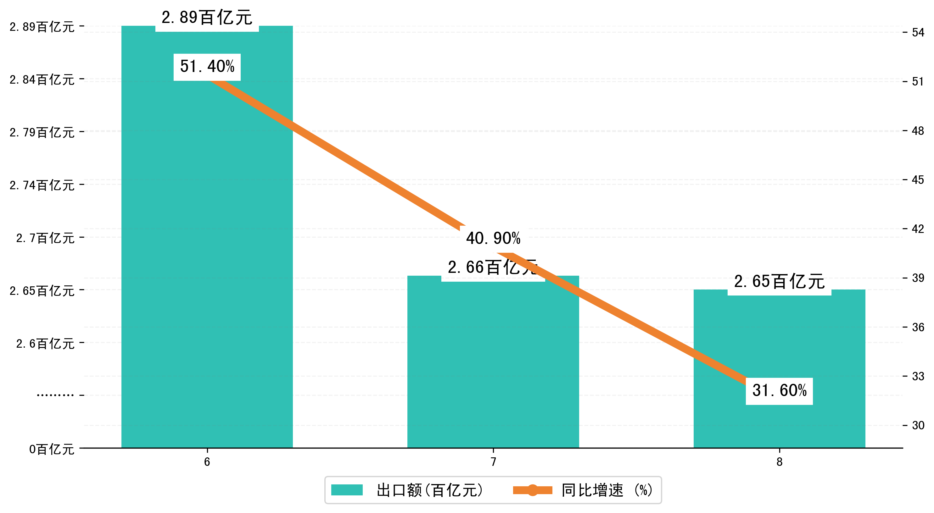 (图二:2024年6-8月新疆维吾尔自治区出口额)