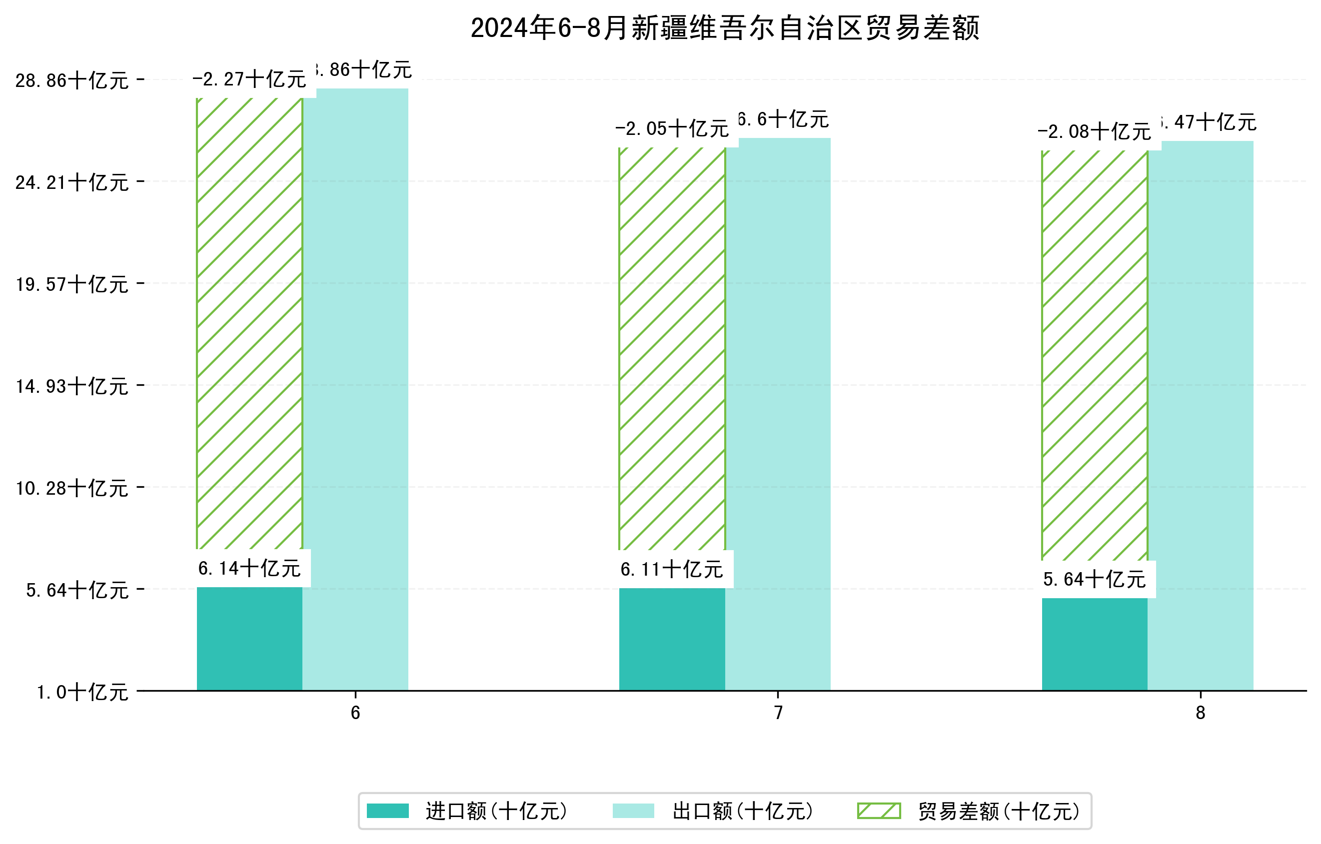 (图四:2024年6-8月新疆维吾尔自治区贸易差额)