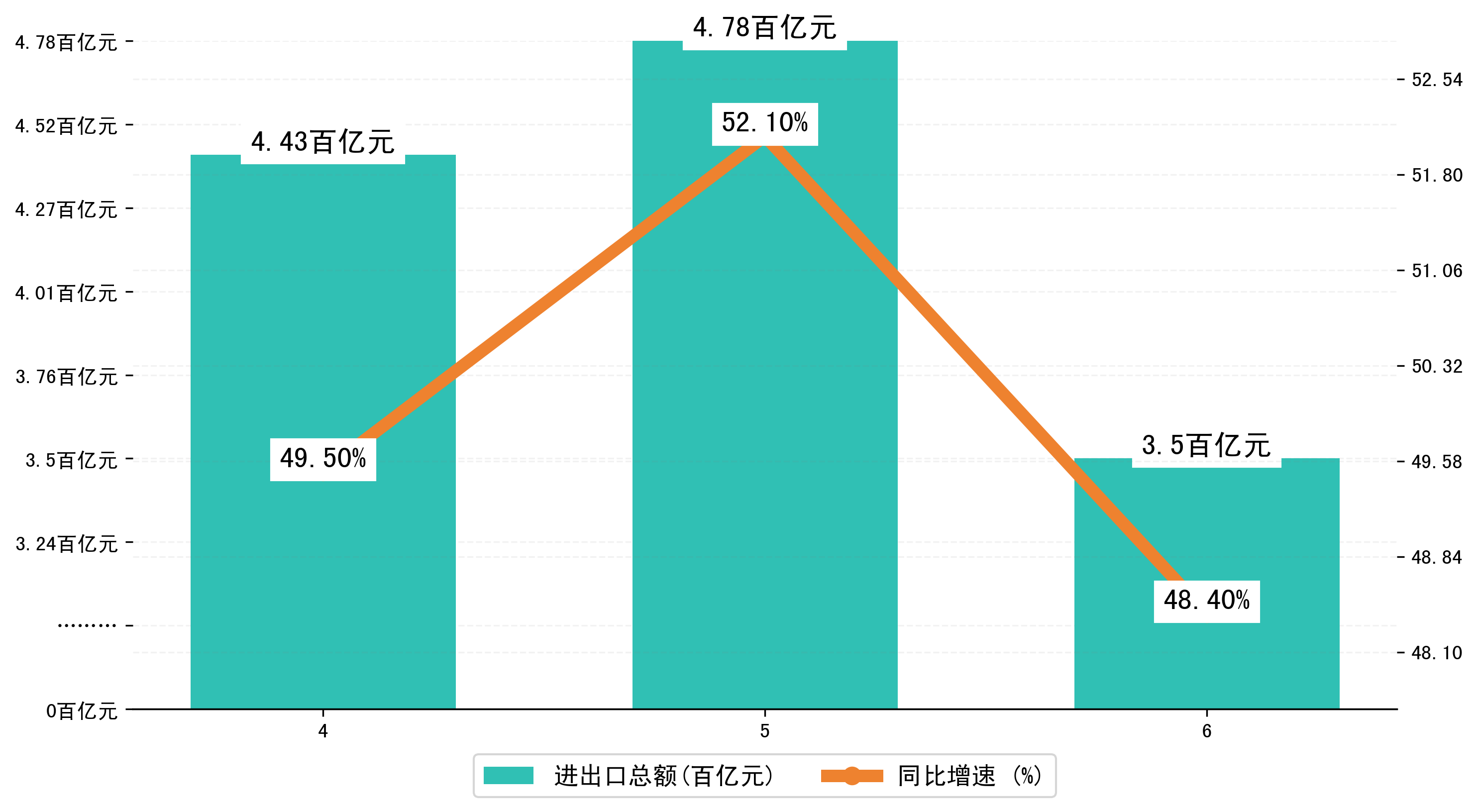 (图一:2024年4-6月新疆维吾尔自治区进出口总额)