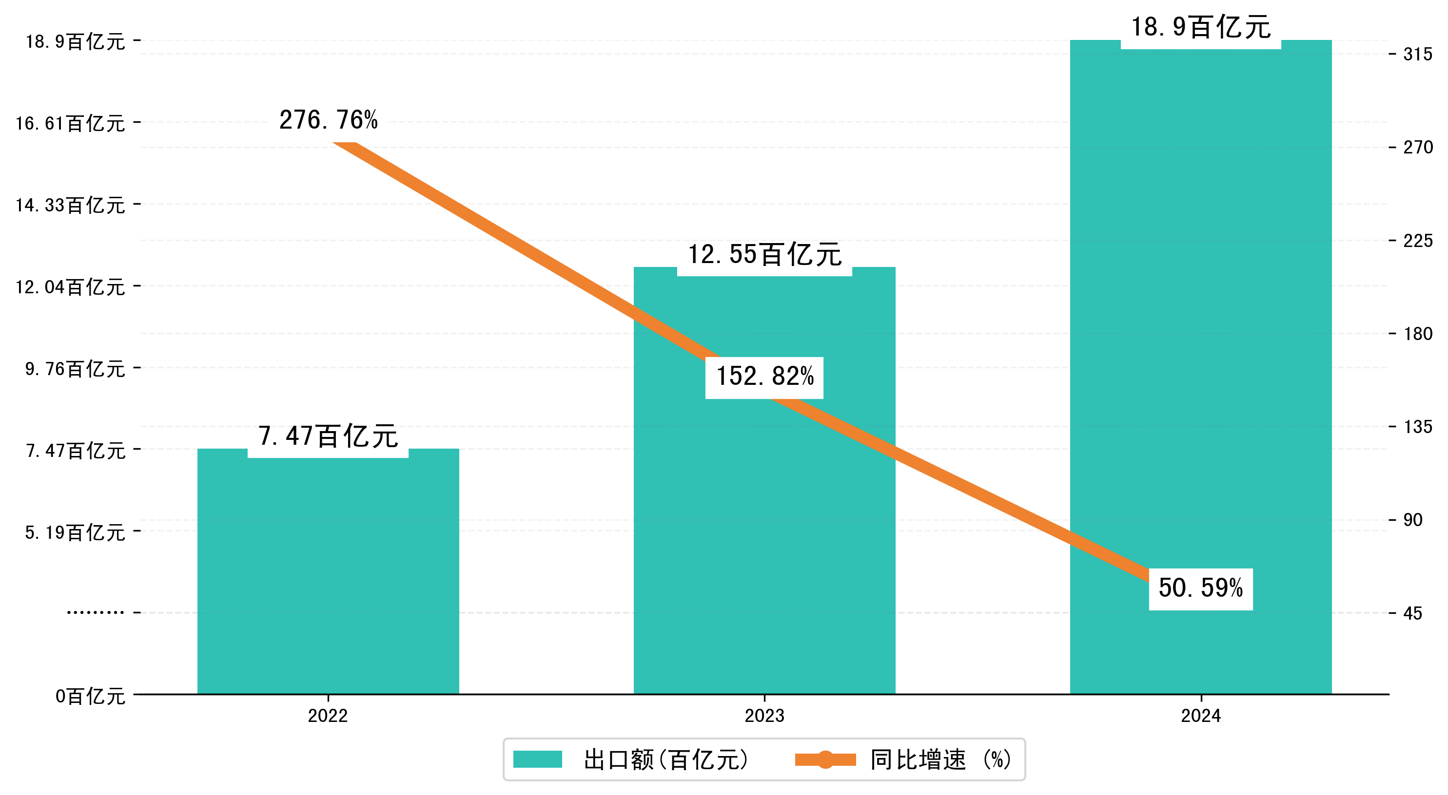 以人民币计,2024年1-6月新疆维吾尔自治区出口额为1889,7429.1531万元,相比上年同期增加了634,8680.1447万元,同比增加了51.40%。