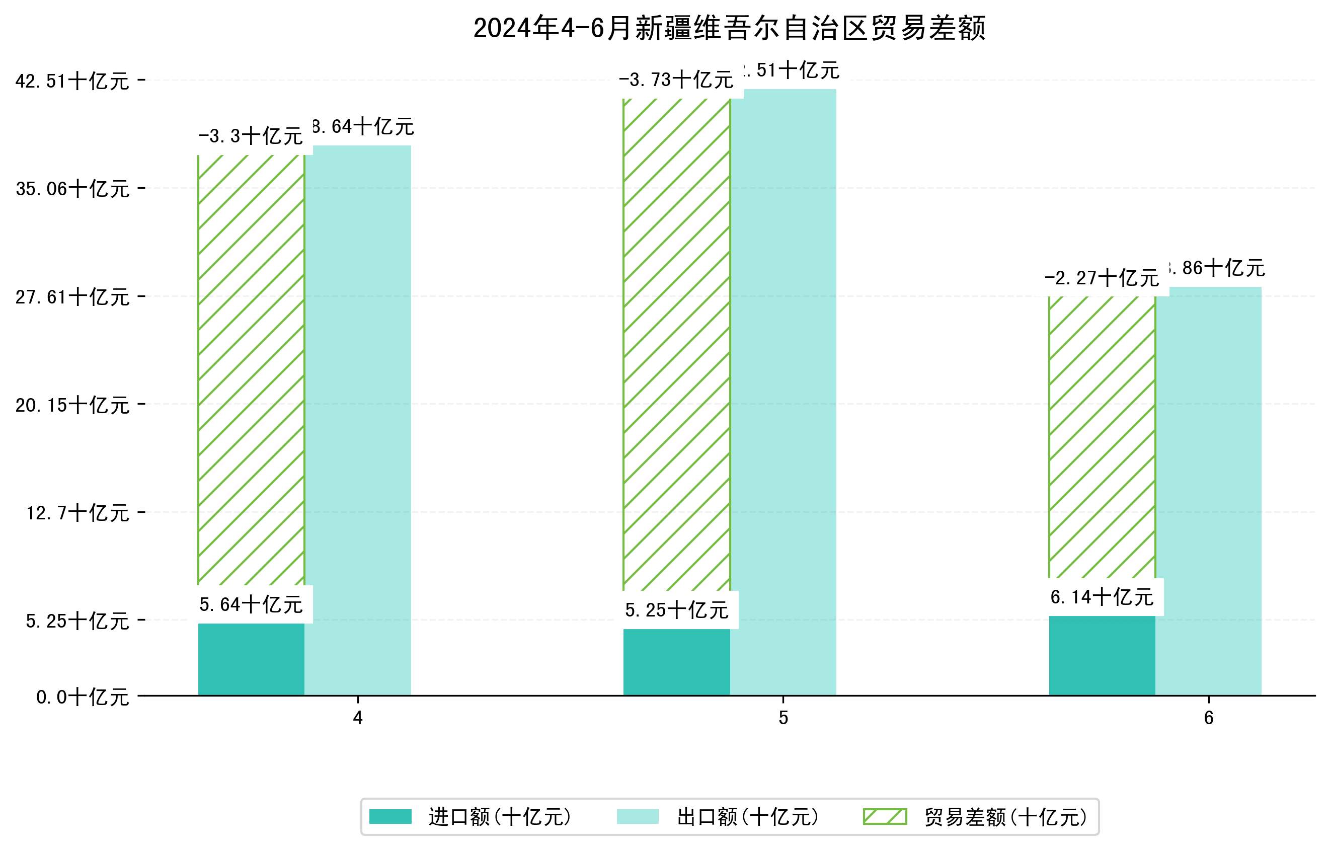 (图四:2024年4-6月新疆维吾尔自治区贸易差额)