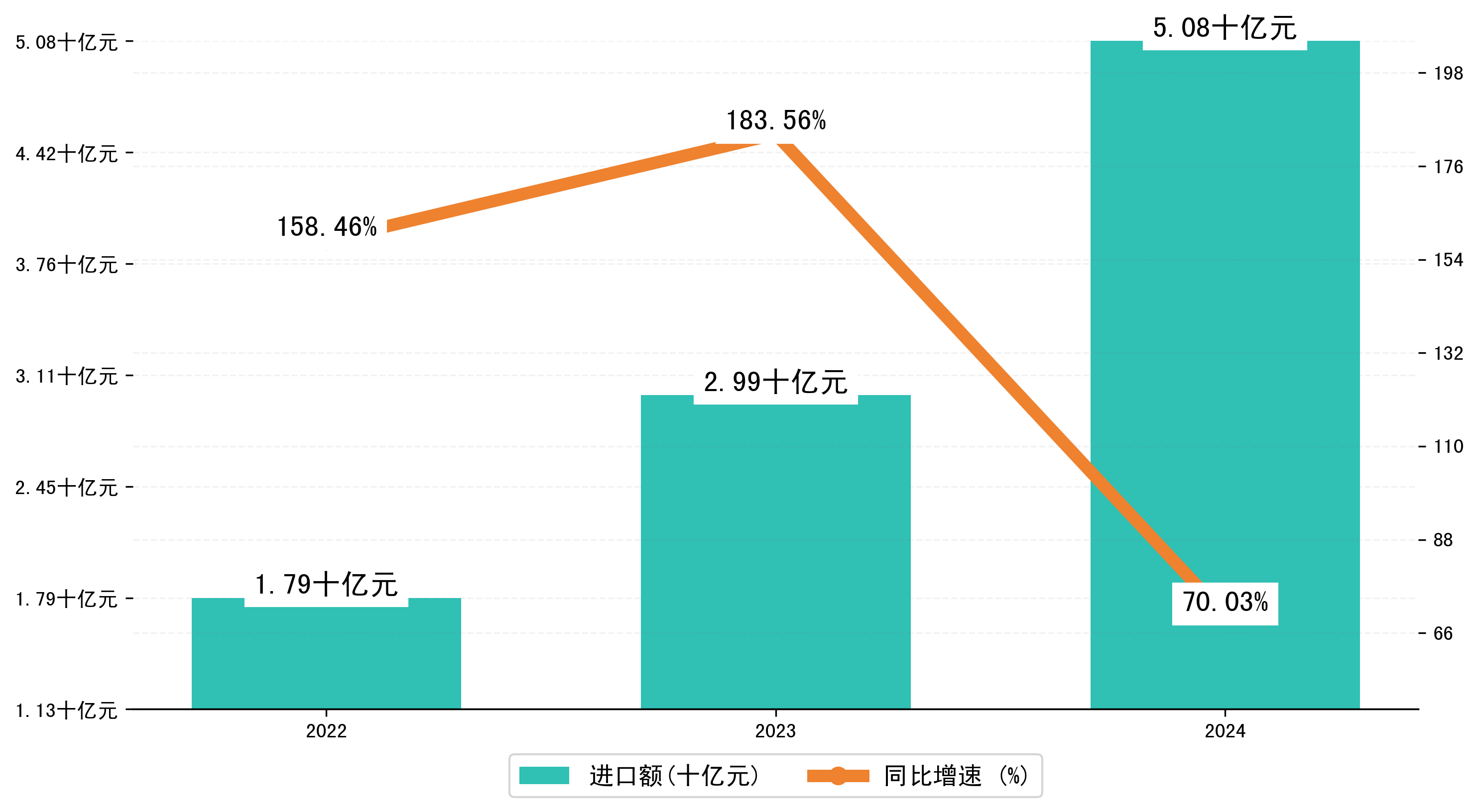 以人民币计,2024年1-1月新疆维吾尔自治区进口额为50,8045.2956万元,相比上年同期增加了20,9239.6879万元,同比增加了69.90%。