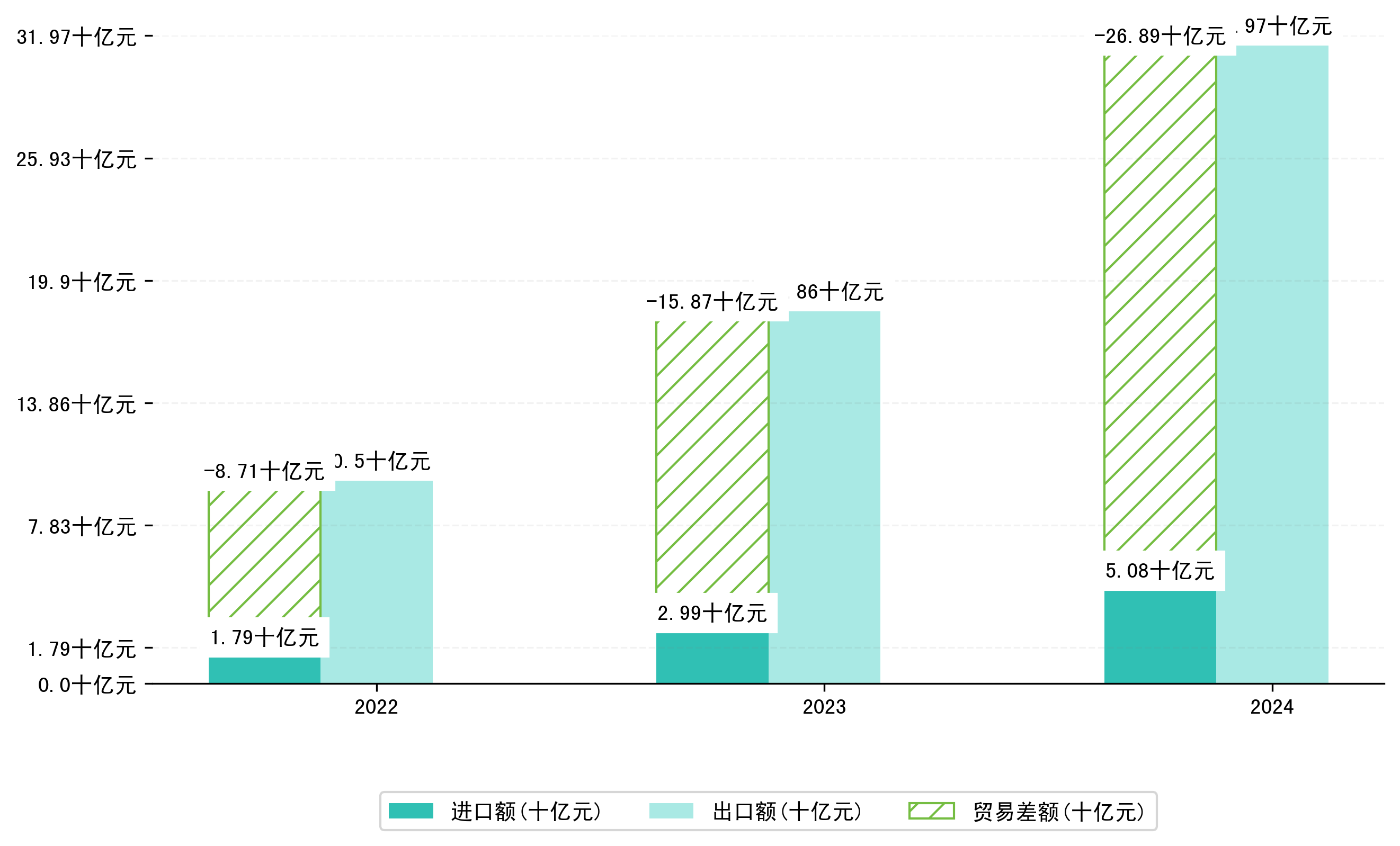 以人民币计,2024年1-1月新疆维吾尔自治区贸易差额为268,8910,9562万元(贸易顺差),相比上年同期增加了110,1743,7695万元,同比增加69.42%。