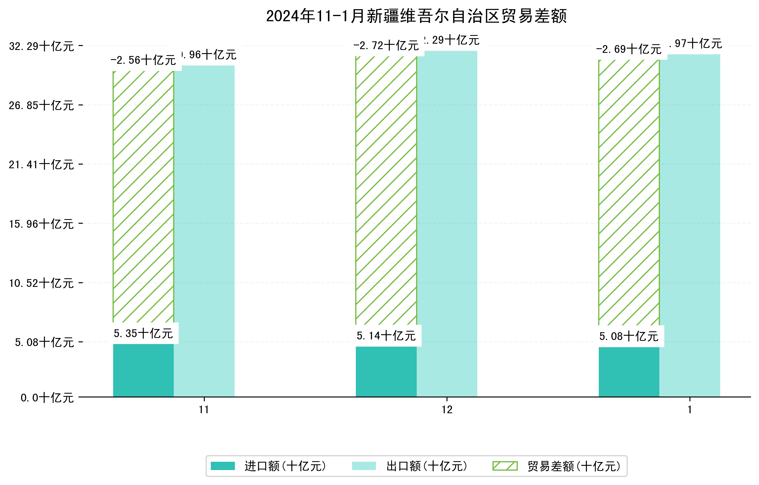 (图四:2024年11-1月新疆维吾尔自治区贸易差额)