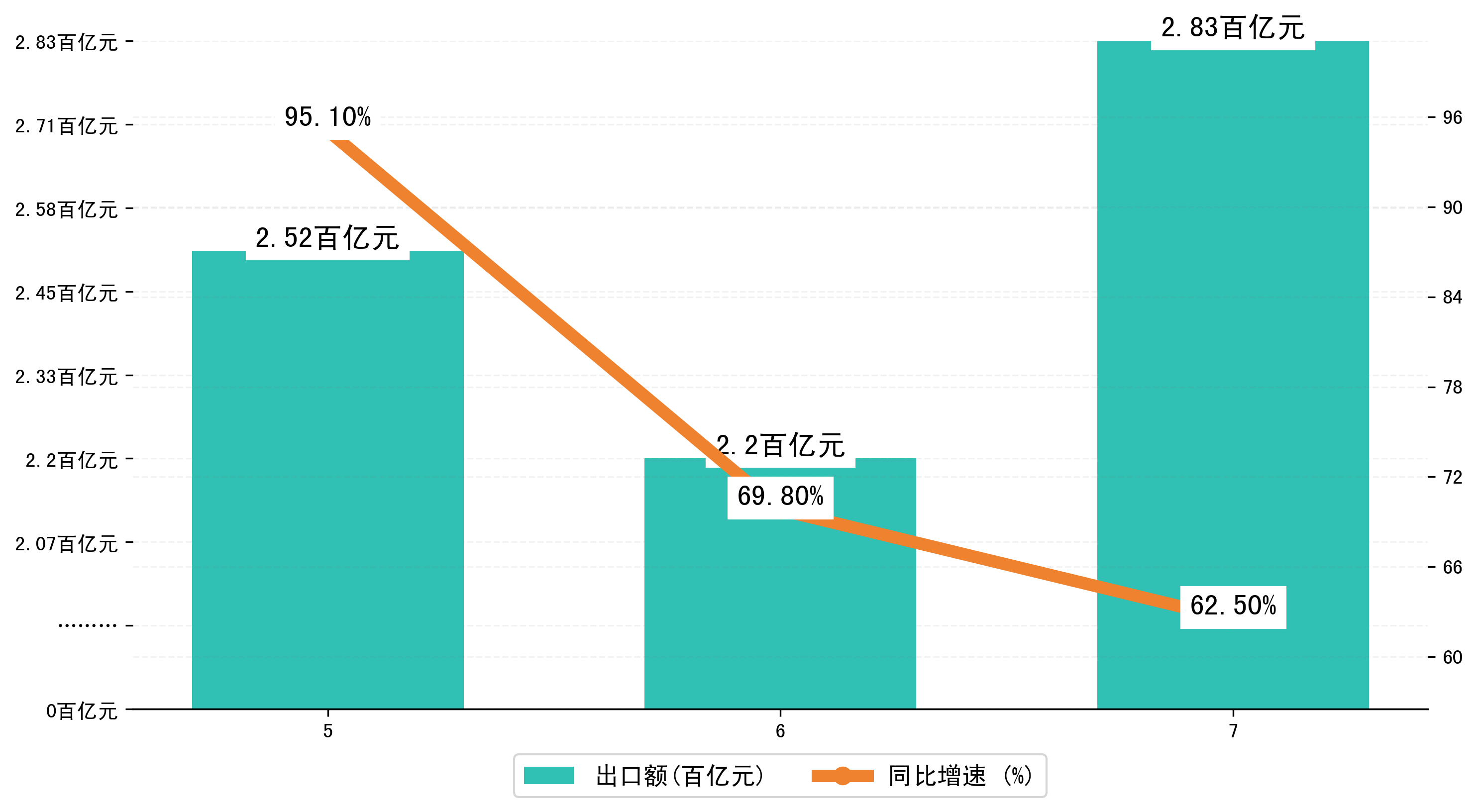 (图二:2023年5-7月新疆维吾尔自治区出口额)