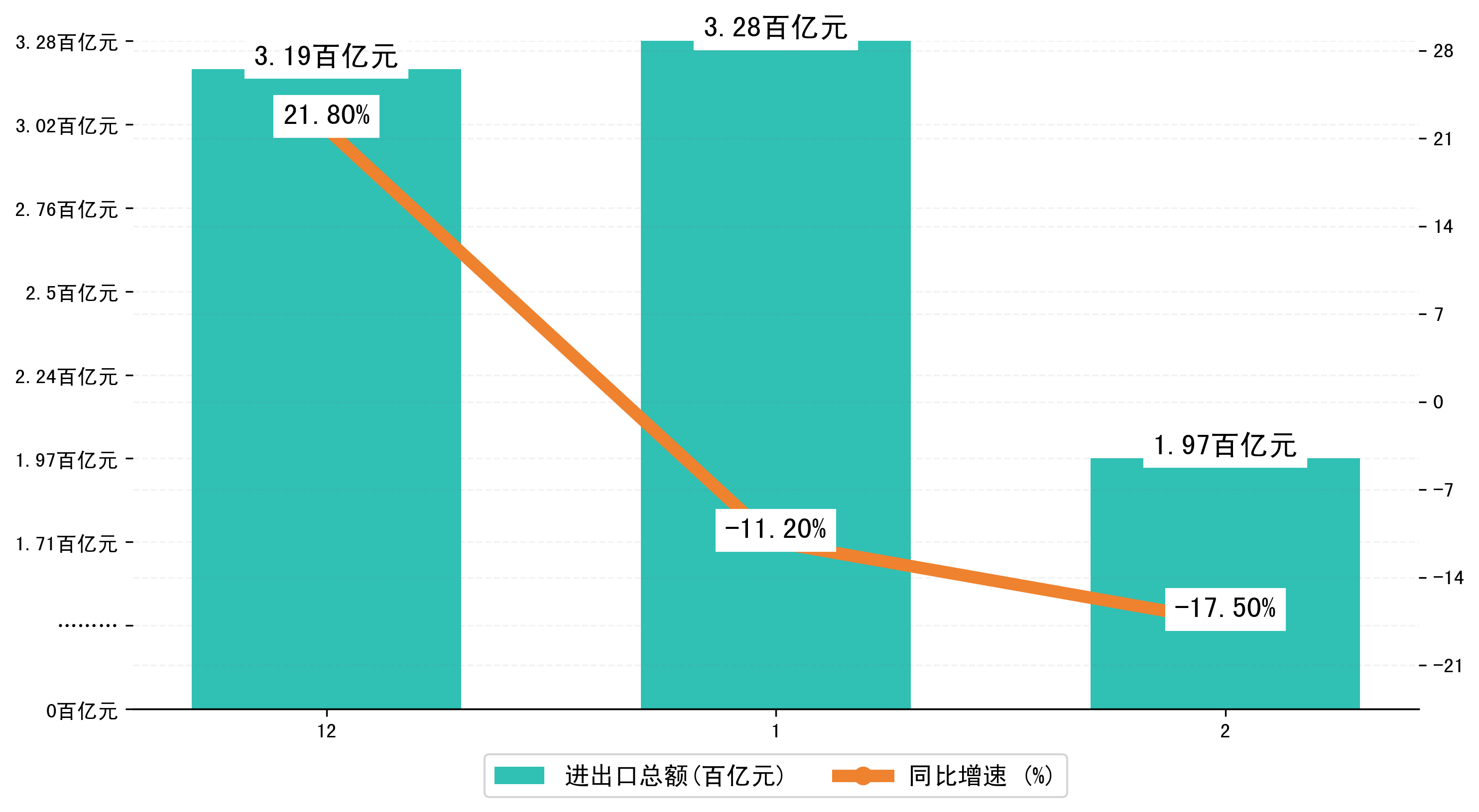 (图一:2025年12-2月新疆维吾尔自治区进出口总额)
