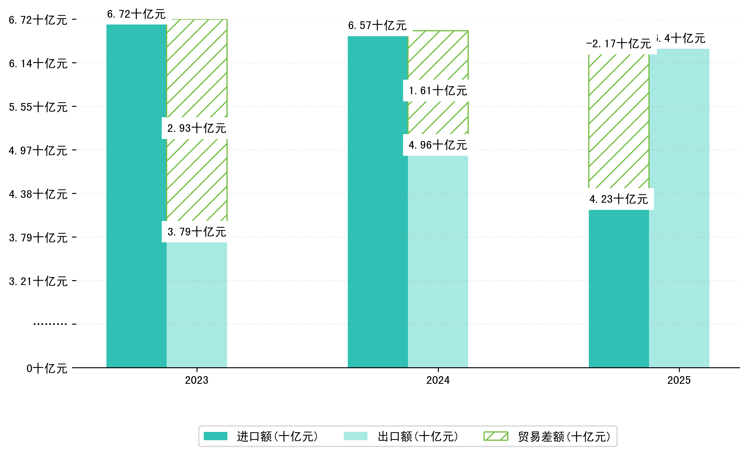 以美元计,2025年1月沈阳市贸易差额为3,0309,7699万美元(贸易顺差),相比上月增加了2,1492,8433万美元;相比上年同期增加了5,2933,7769万美元,同比增加-233.97%。