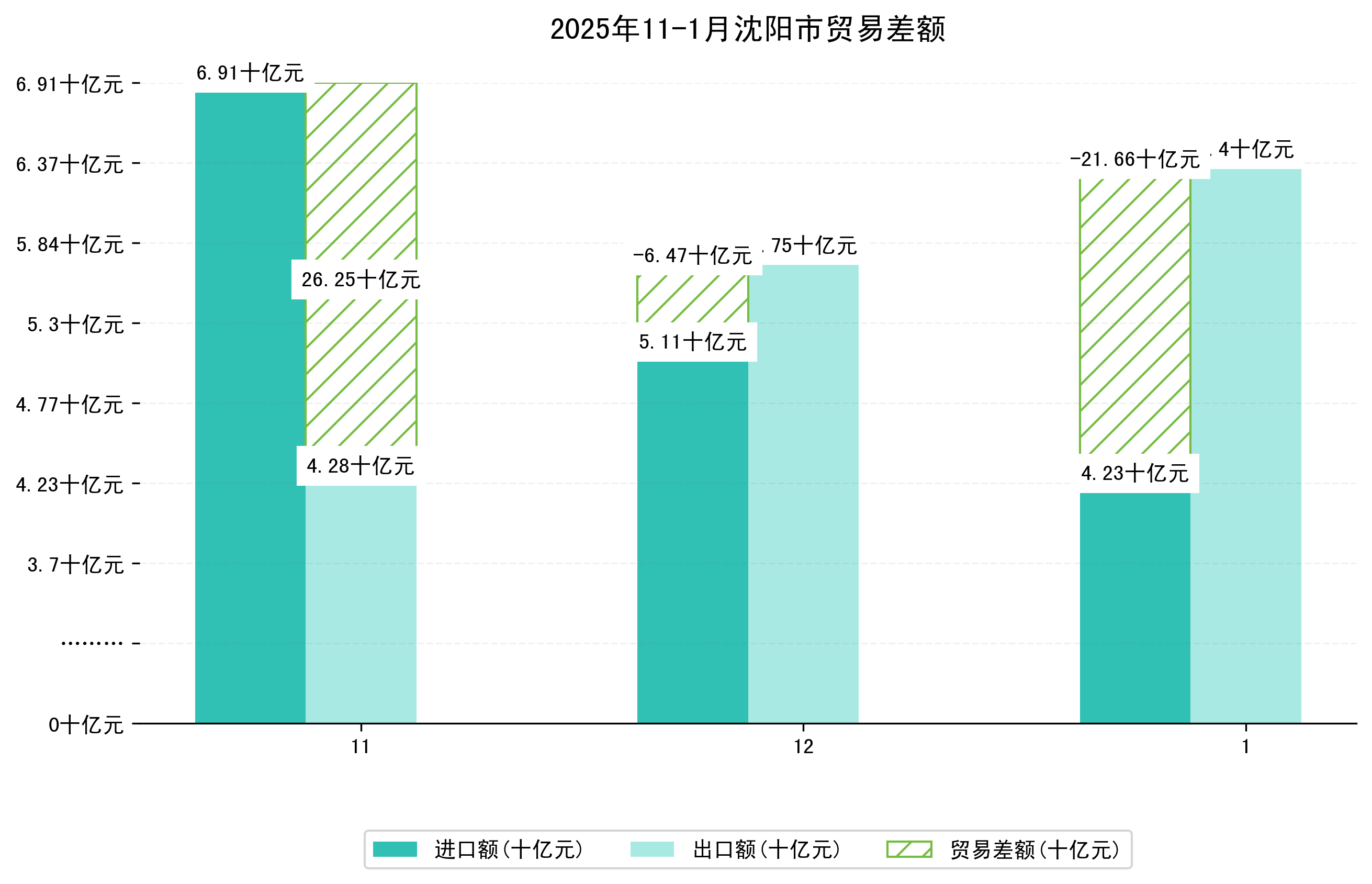2025年1月沈阳市进出口总额及进出口差额统计分析