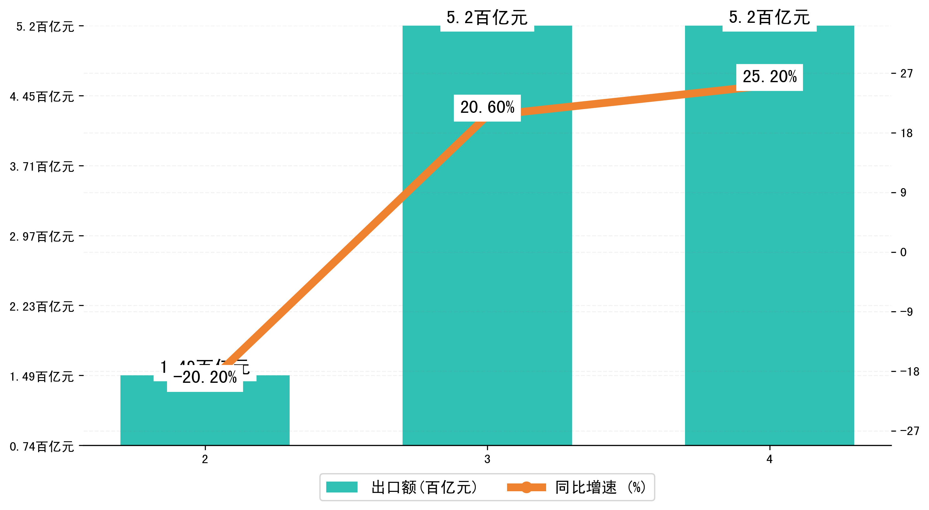 (图二:2025年2-4月新疆维吾尔自治区出口额)
