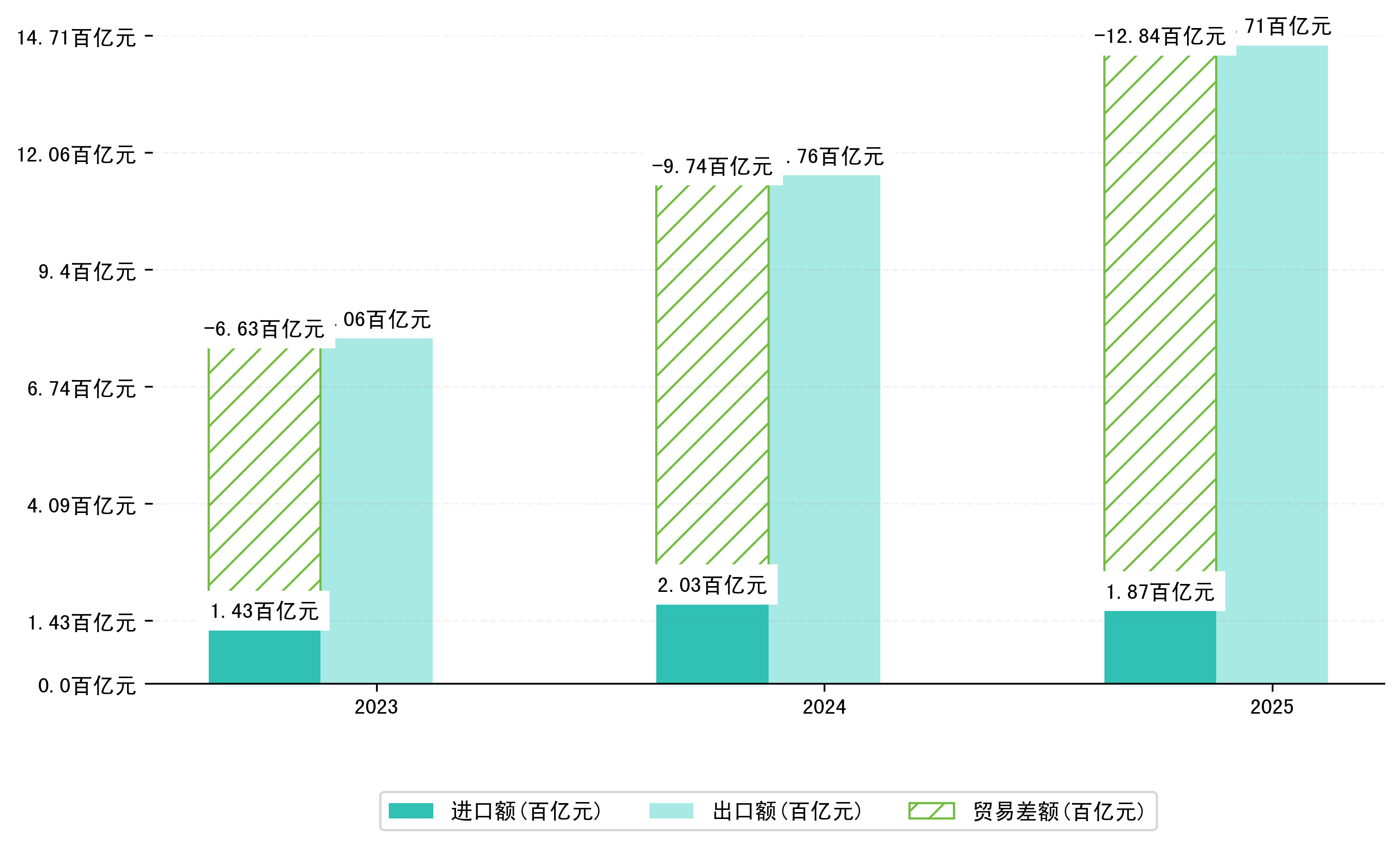 以美元计,2025年1-4月新疆维吾尔自治区贸易差额为178,9204,0713万美元(贸易顺差),相比上年同期增加了41,8279,9092万美元,同比增加30.51%。