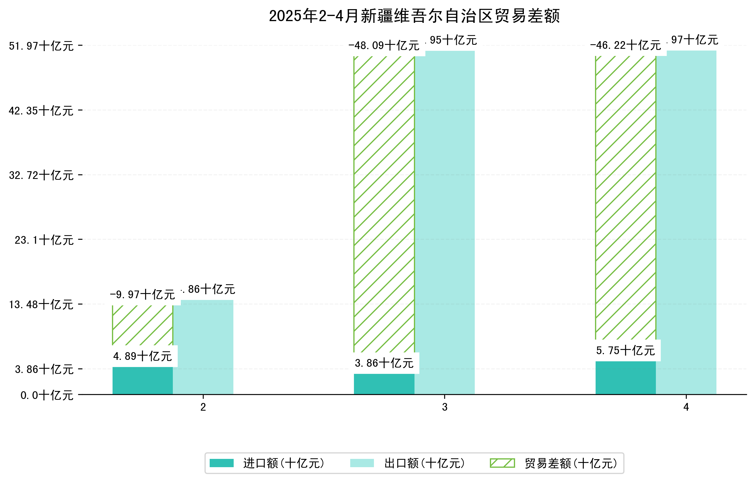 (图四:2025年2-4月新疆维吾尔自治区贸易差额)