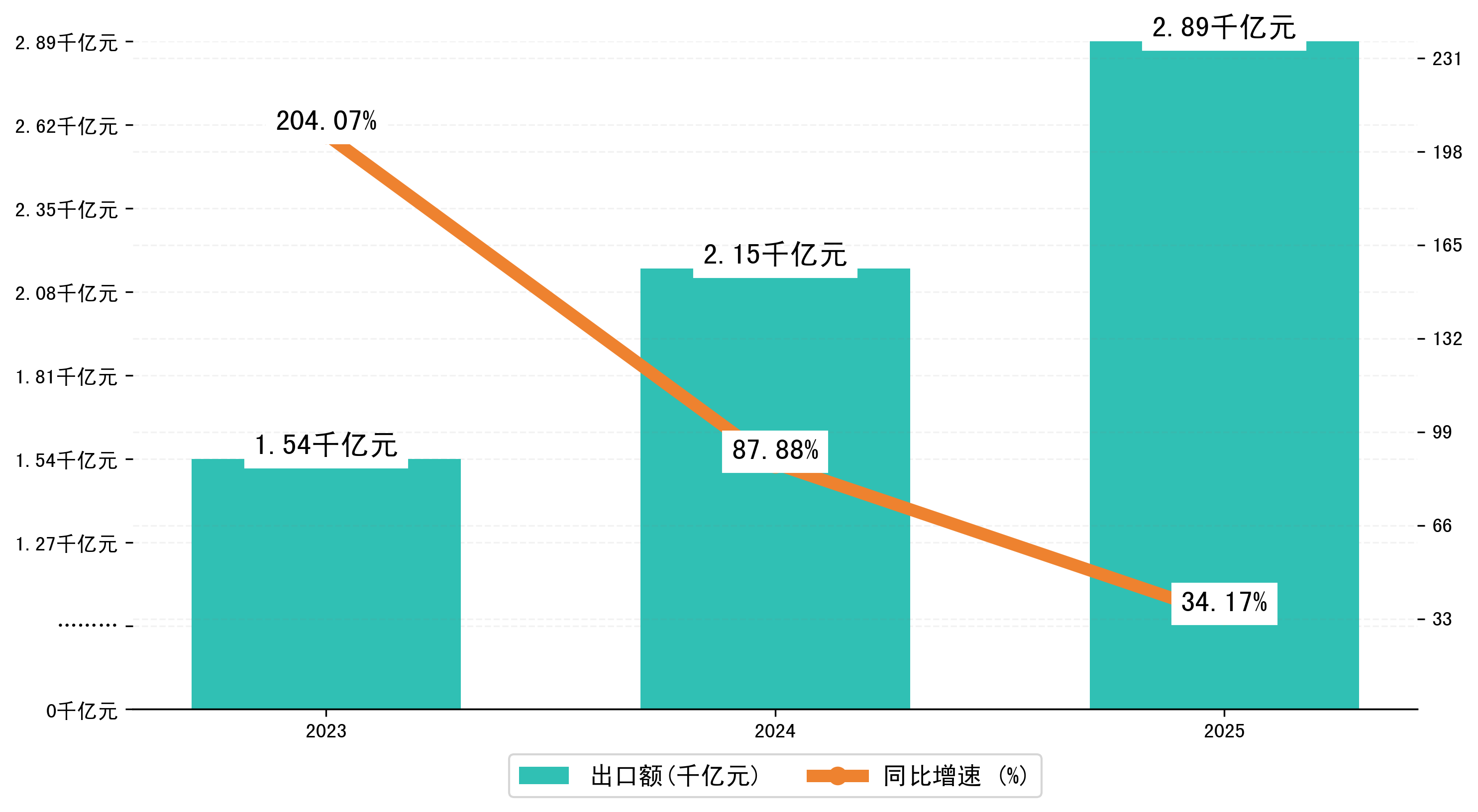 以人民币计,2025年1-7月新疆维吾尔自治区出口额为2889,8592.9859万元,相比上年同期增加了735,9590.3041万元,同比增加了35.00%。