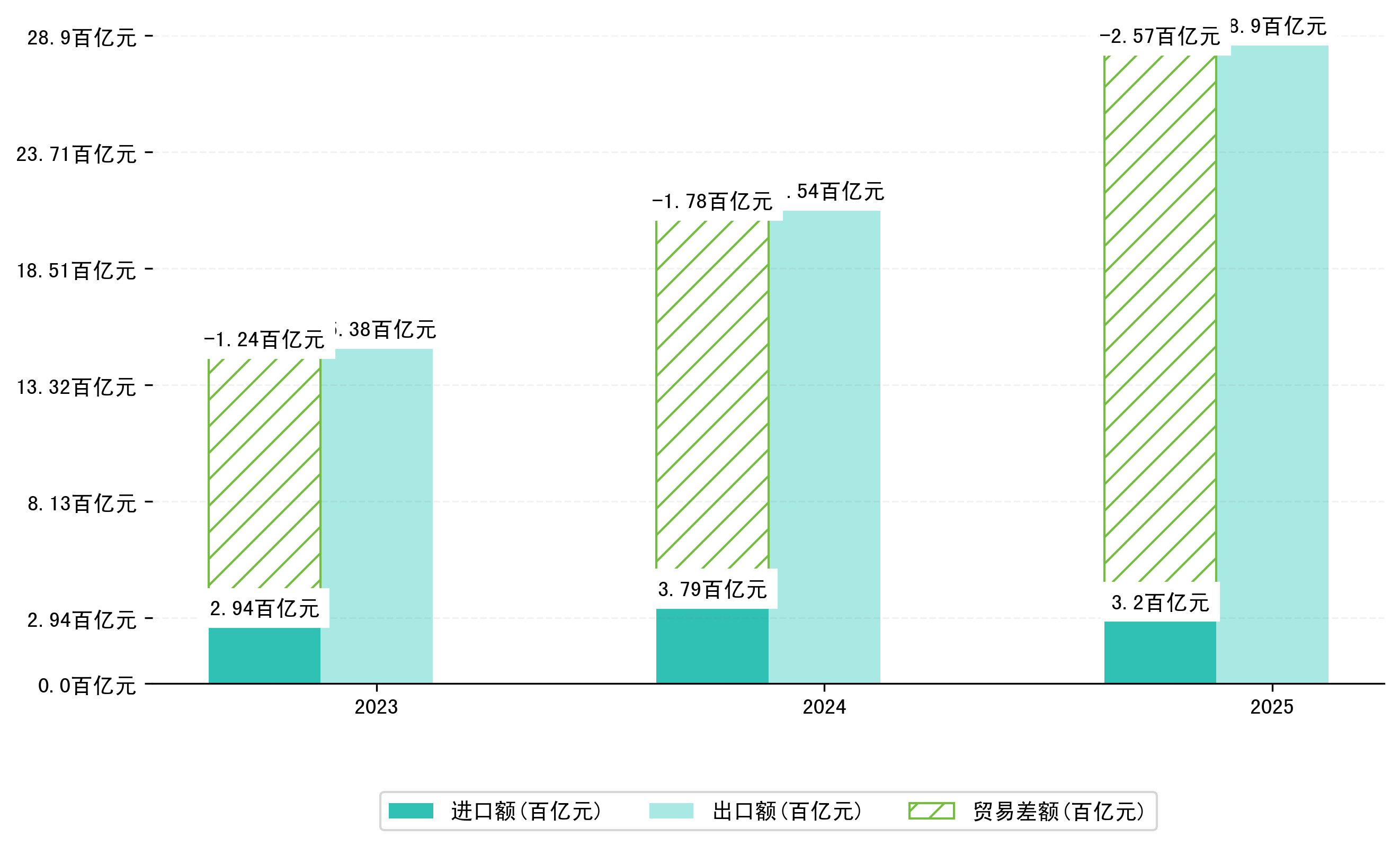 以美元计,2025年1-7月新疆维吾尔自治区贸易差额为357,5799,4056万美元(贸易顺差),相比上年同期增加了107,7004,0993万美元,同比增加43.1%。