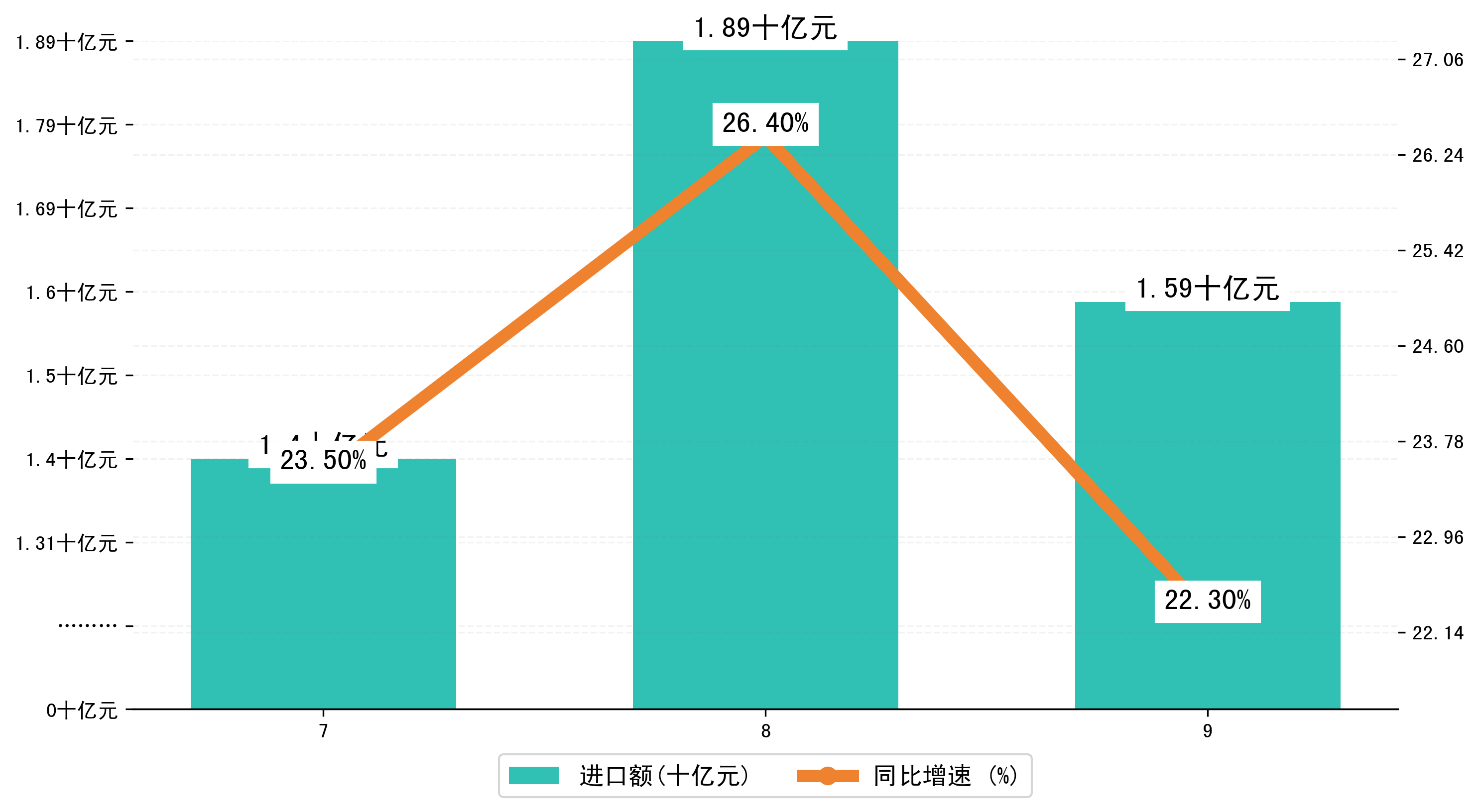 以人民币计,2025年1-9月乌鲁木齐市进口额为142,0007.6475万元,相比上年同期增加了25,5020.3821万元,同比增加了22.30%。