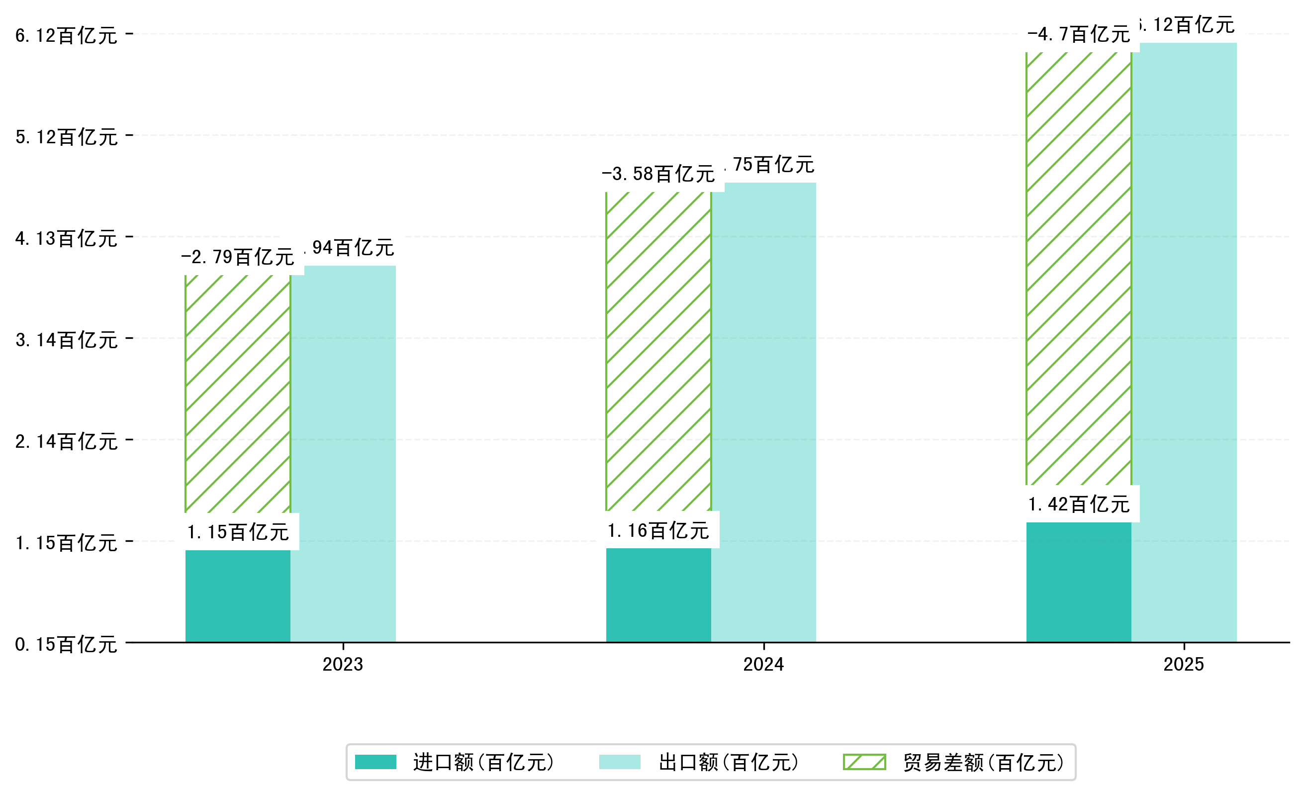 以人民币计,2025年1-9月乌鲁木齐市贸易差额为469,7799,1490万元(贸易顺差),相比上年同期增加了111,4418,8088万元,同比增加31.1%。