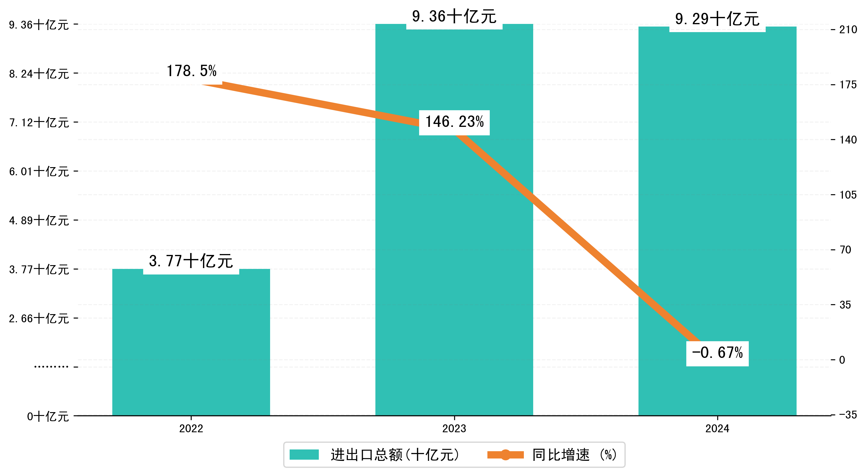 以人民币计,2024年1-10月西藏自治区进出口总额为92,9467.8348万元,相比上年同期减少了6277.7825万元,同比减少了-0.70%。