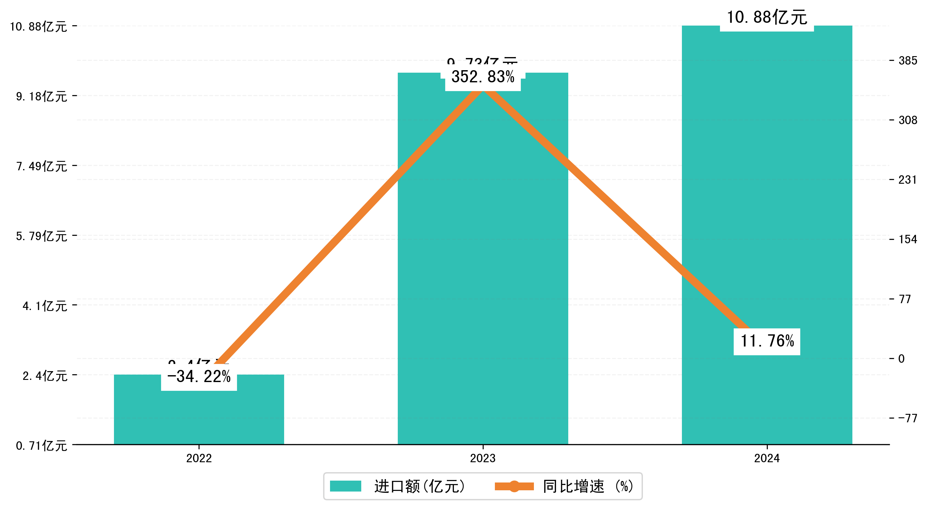 (图七:2022-2024年1-10月西藏自治区累计进口额)