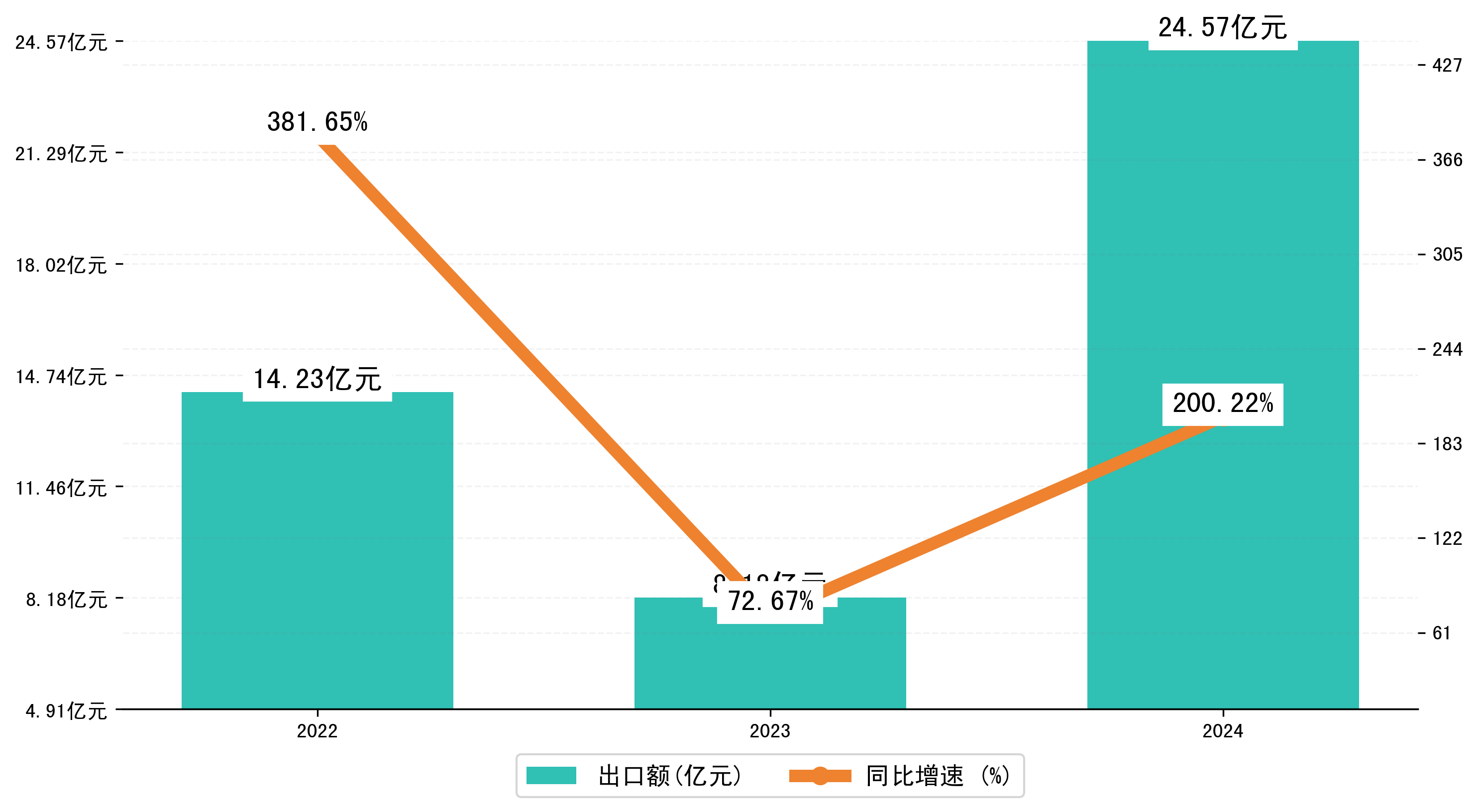 以人民币计,2024年1-4月西藏自治区出口额为24,5716.1822万元,相比上年同期增加了16,3869.5752万元,同比增加了200.20%。