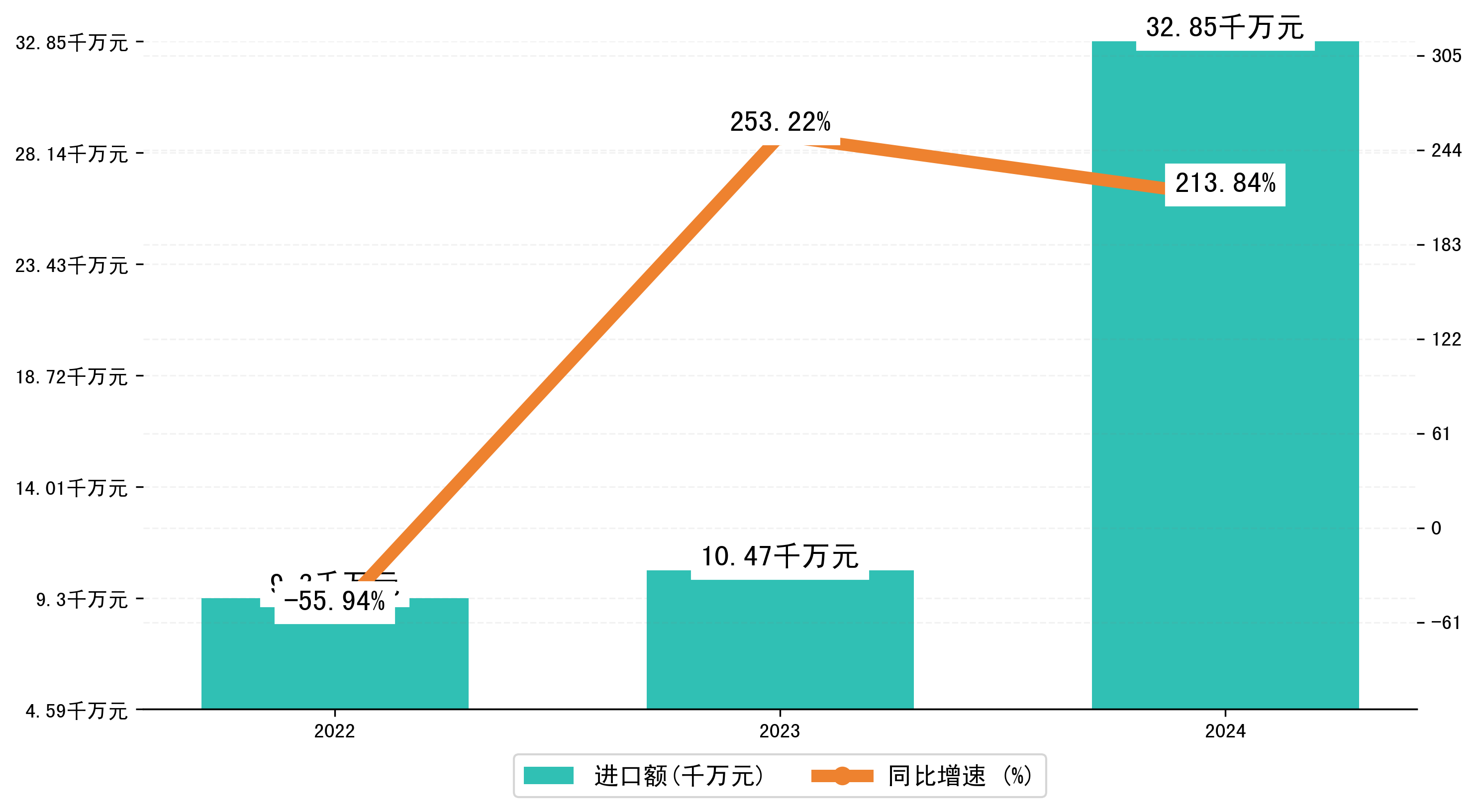 以人民币计,2024年1-4月西藏自治区进口额为3,2847.2401万元,相比上年同期增加了2,2381.0863万元,同比增加了213.60%。