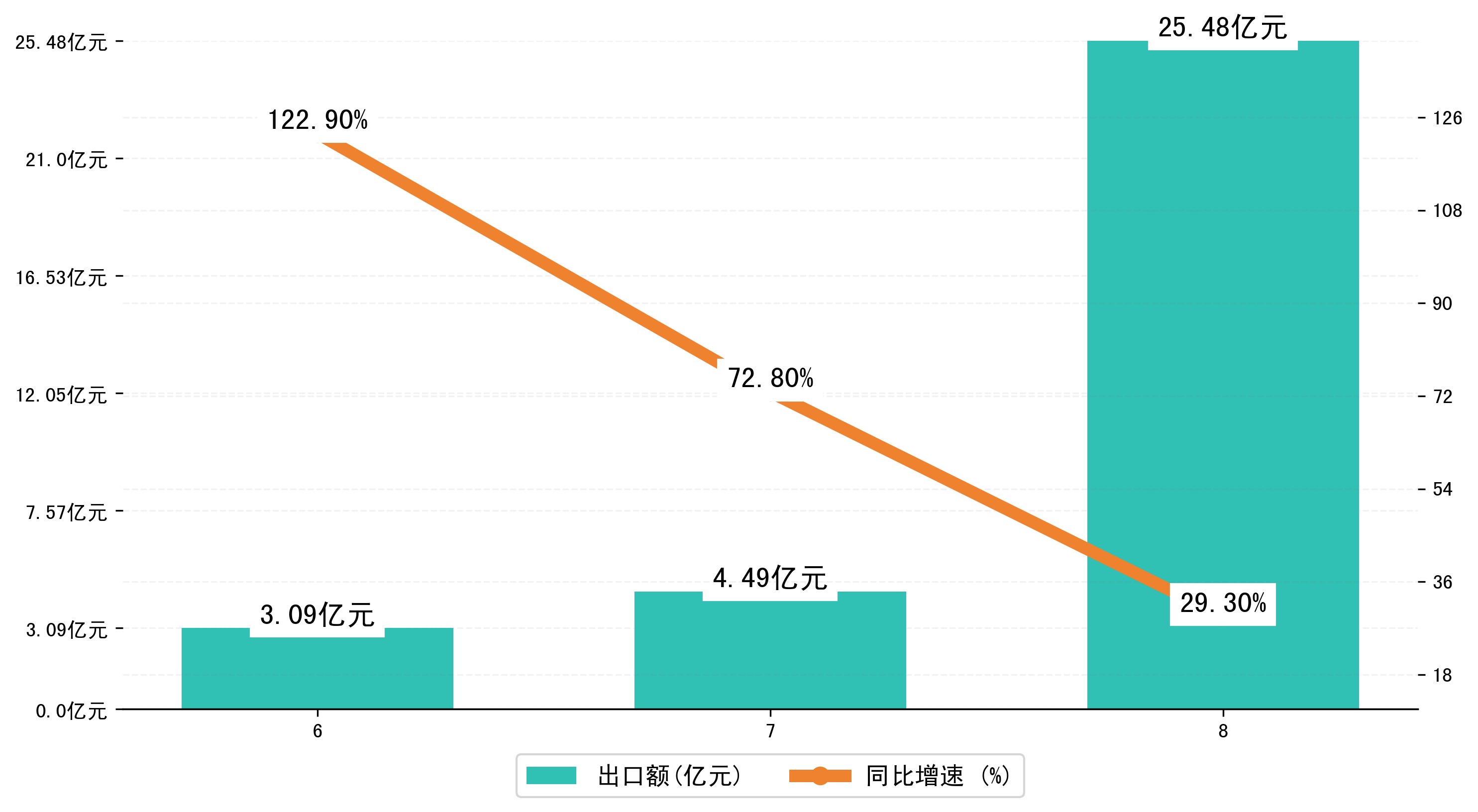 (图二:2024年6-8月西藏自治区出口额)