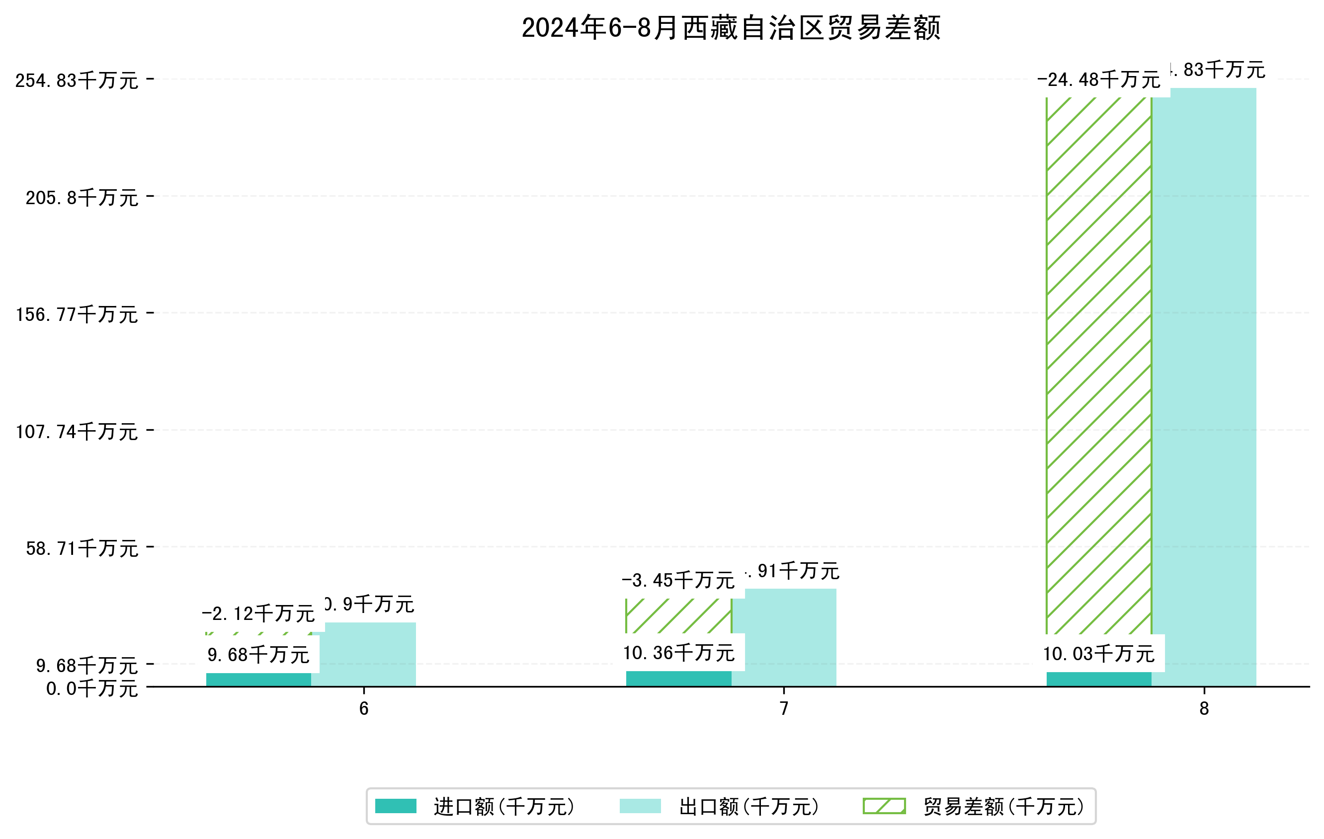 (图四:2024年6-8月西藏自治区贸易差额)