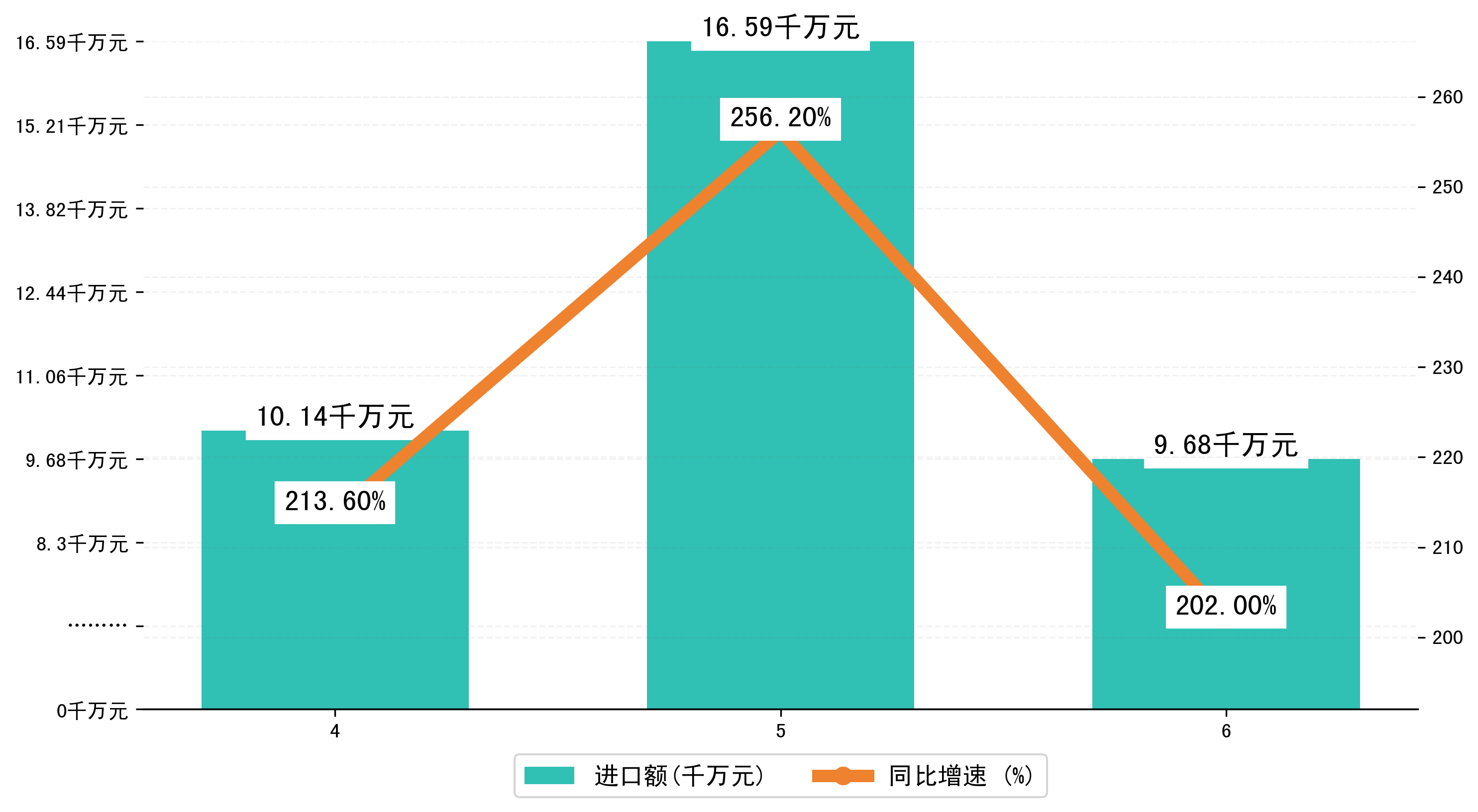 以人民币计,2024年6月西藏自治区进口额为9678.8747万元,相比上月减少了6909.6964万元;相比上年同期增加了3988.6371万元,同比增加了202.00%。