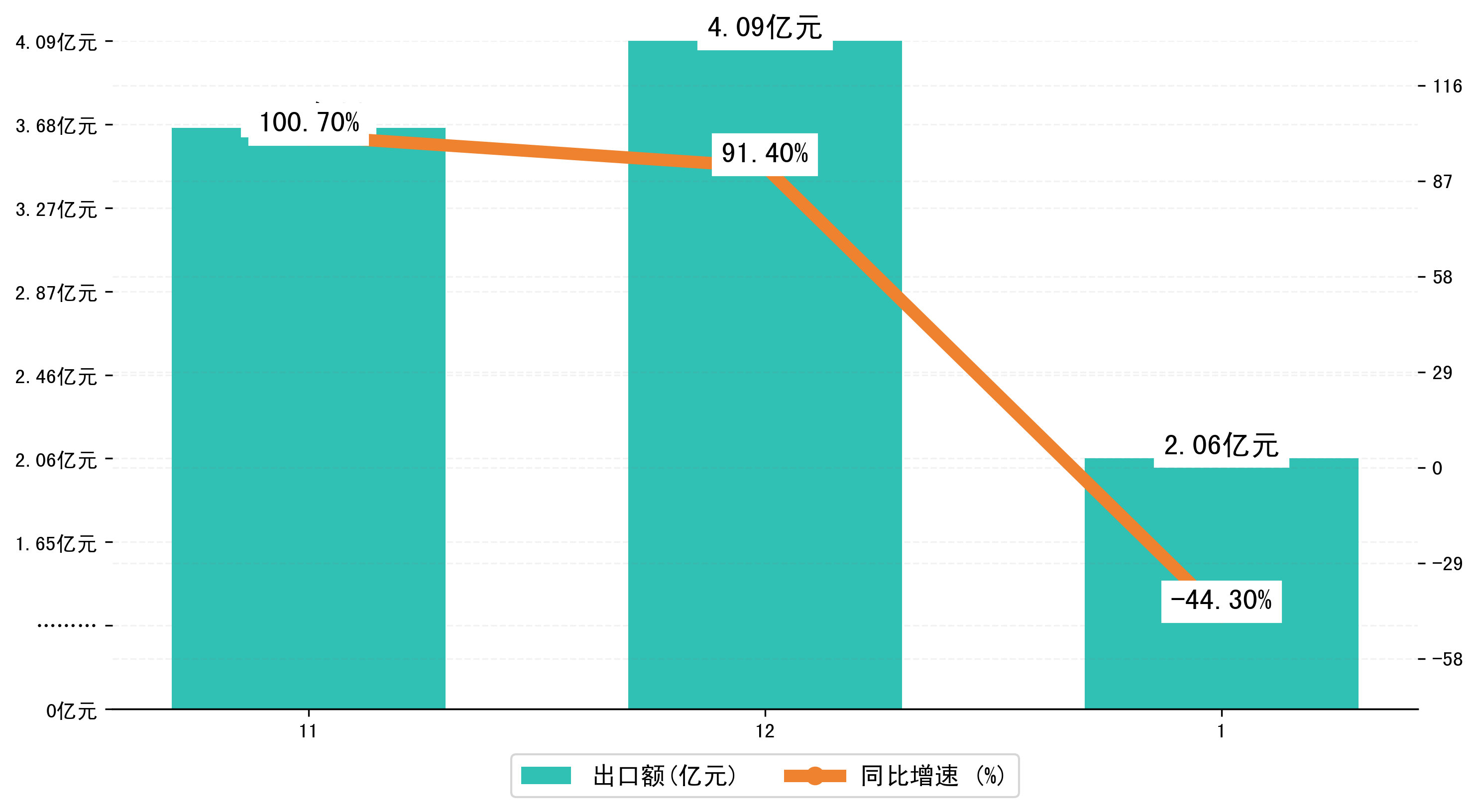 以美元计,2023年1-1月西藏自治区出口额为2945.6072万美元,相比上年同期减少了2810.8074万美元,同比减少-49.10%。