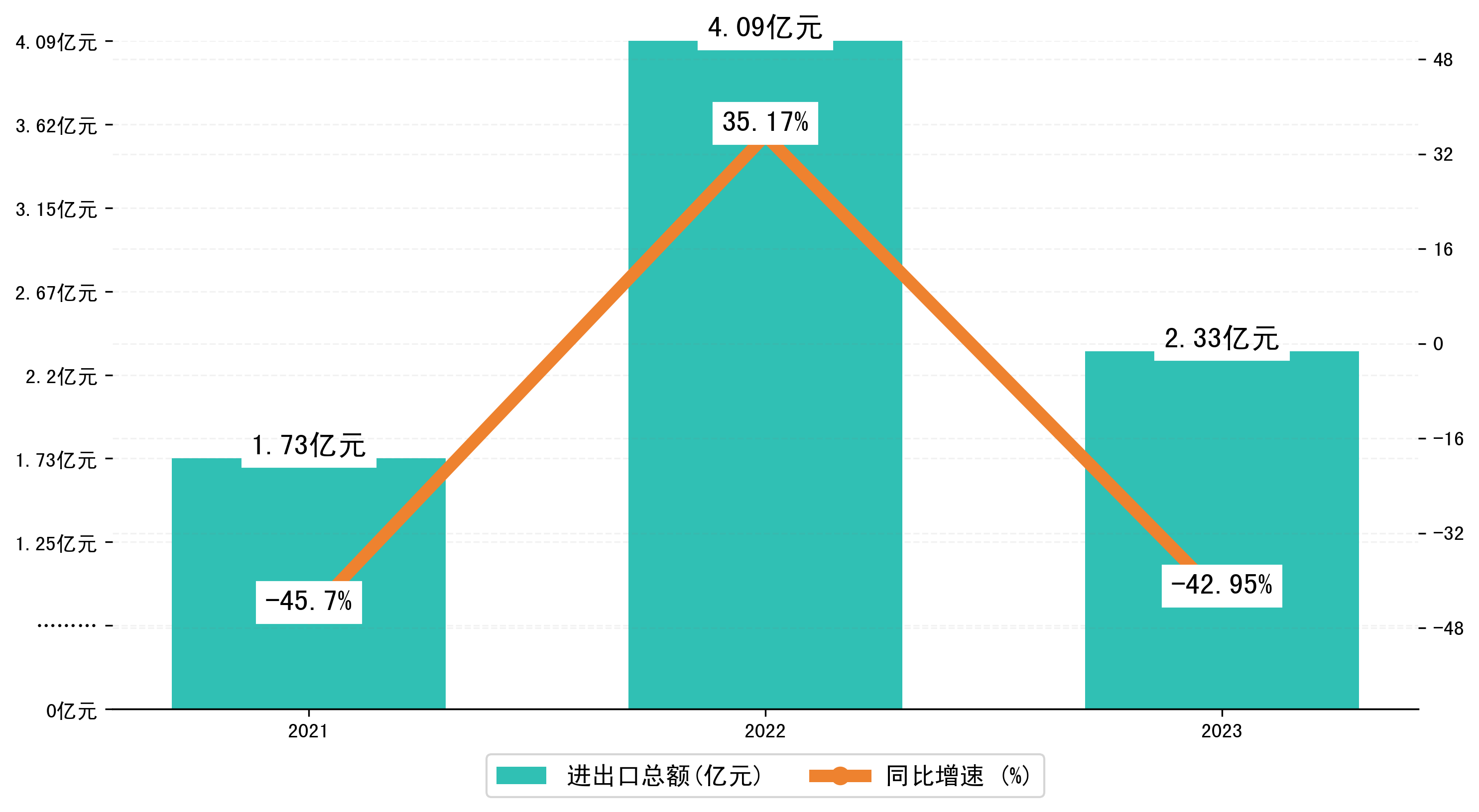 以美元计,2023年1-1月西藏自治区进出口总额为3345.7851万美元,相比上年同期减少了3071.7622万美元,同比减少-48.10%。