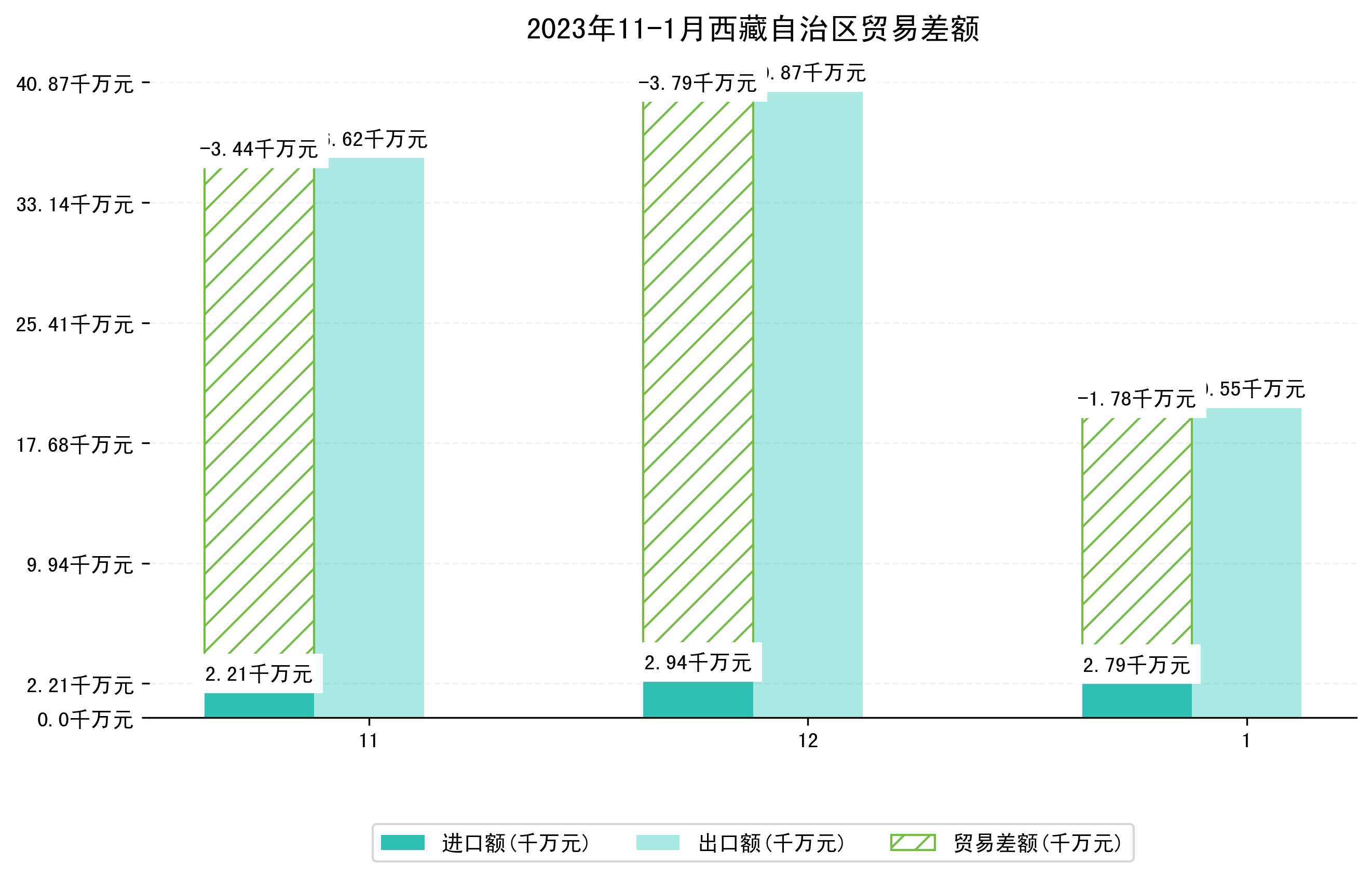 2023年1月西藏自治区进出口总额及进出口差额统计分析