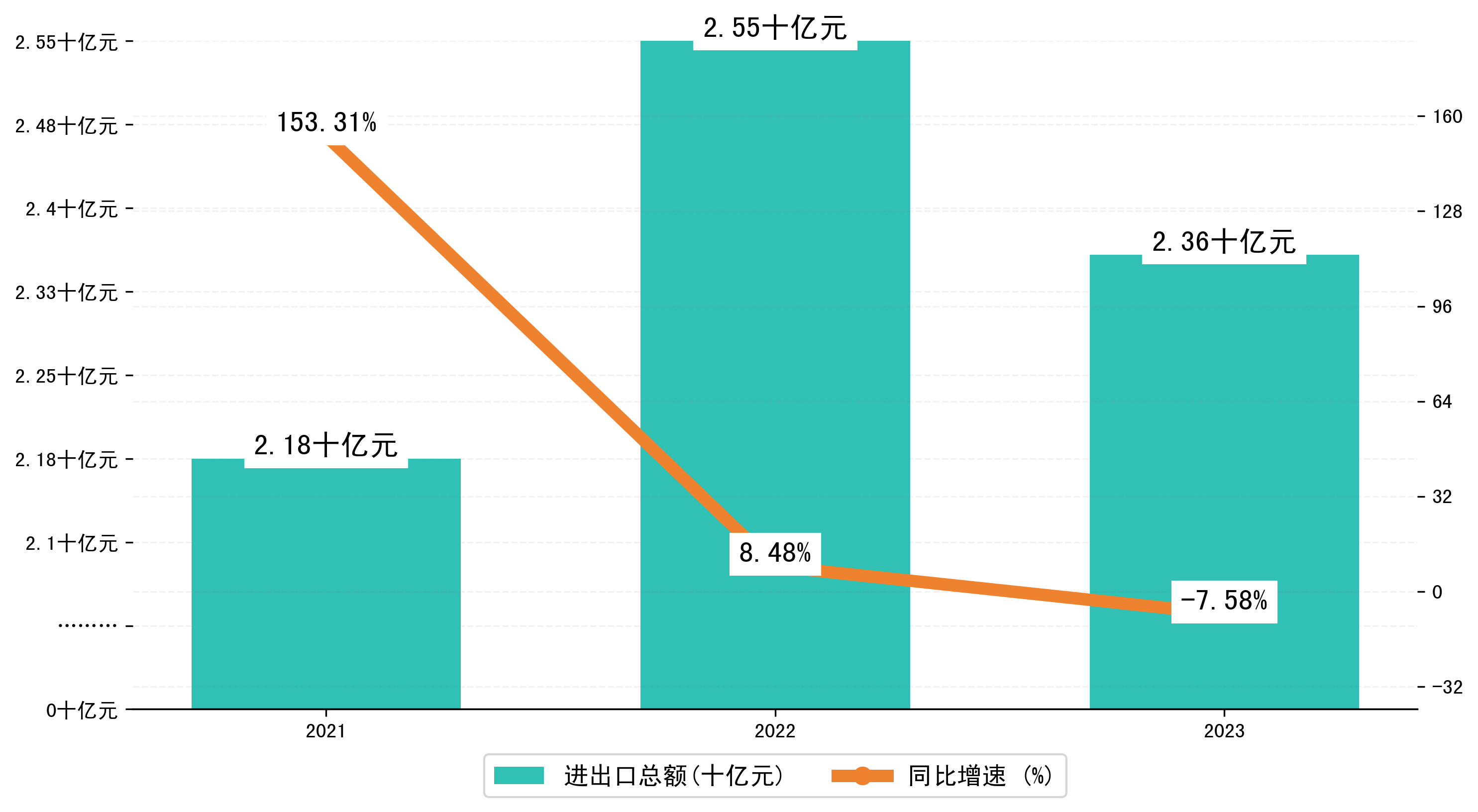以人民币计,2023年1-7月西藏自治区进出口总额为23,6051.3407万元,相比上年同期减少了1,9373.4795万元,同比减少了-7.70%。