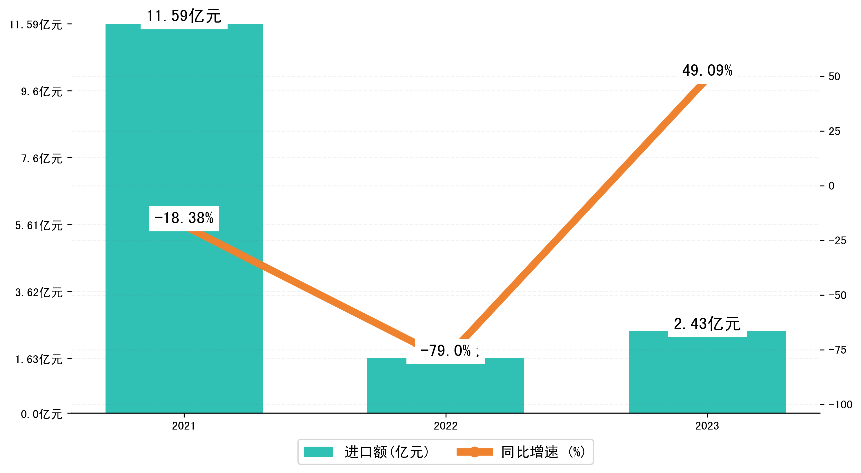 以美元计,2023年1-7月西藏自治区进口额为3496.7429万美元,相比上年同期增加了966.5659万美元,同比增加38.20%。